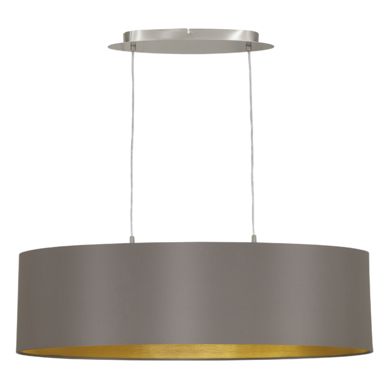 Допускается отличие страны-изготовителя, указанной в характеристиках. Линии производства могут находиться в нескольких государствах. Это не влияет на качество изготовления товара: все заводы данного бренда работают по общим стандартам, а готовые изделия проходят соответствующий контроль.Австрия Коллекция Maserlo ЦветЦвет арматуры матовый никель Цвет Никель Материал арматуры Металл Цвет плафона золото Материал плафона Ткань РазмерыВысота (мм) 1100 Длина (мм) 780 Ширина (мм) 220 ЭлектрикаКоличество ламп (шт) 2 Цоколь E27 Тип лампы Накаливания Лампочки в комплекте Нет в комплекте Возможность подключение диммера Есть Мощность лампы (Вт) 60 Общая мощность (Вт) 120 Напряжение (В) 220 Площадь освещения 7 Дополнительная информацияСтепень защиты (IP) IP20 Вес (Кг) 1.598 Тип подвеса На тросах Количество подвесов Одиночный подвес -