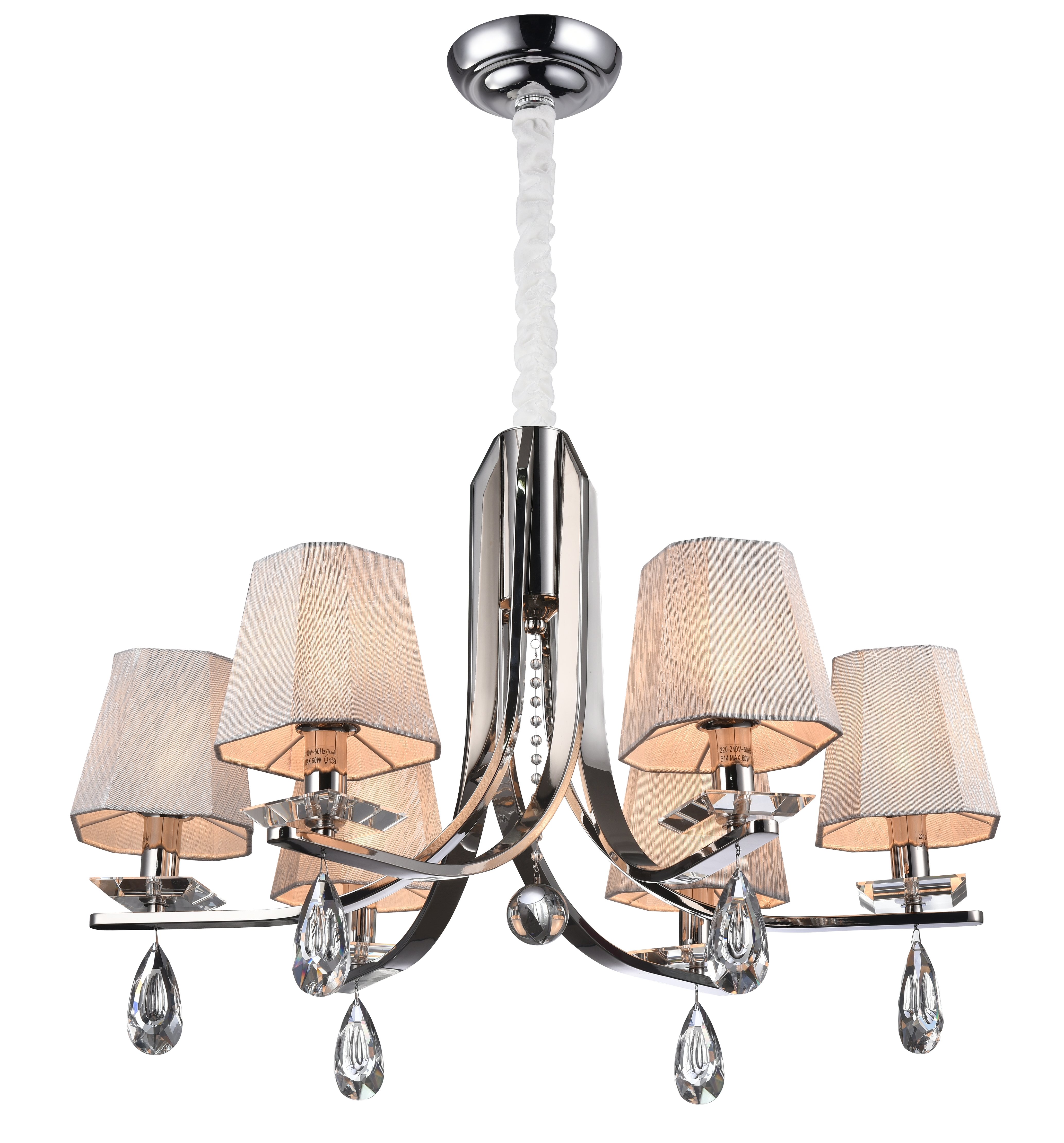 Допускается отличие страны-изготовителя, указанной в характеристиках. Линии производства могут находиться в нескольких государствах. Это не влияет на качество изготовления товара: все заводы данного бренда работают по общим стандартам, а готовые изделия проходят соответствующий контроль.США Коллекция 3250 ЦветЦвет арматуры Никель Цвет Хром Материал арматуры Железо Цвет декора прозрачный Цвет плафона Серебристый Материал декора Хрустальное стекло Материал плафона Хлопок РазмерыВысота (мм) 1520 Диаметр (мм) 720 Высота минимальная (мм) 520 Ширина (мм) 720 ЭлектрикаКоличество ламп (шт) 6 Цоколь E14 Тип лампы Светодиодная, Накаливания Лампочки в комплекте Нет в комплекте Мощность лампы (Вт) 60 Общая мощность (Вт) 360 Напряжение (В) 220 Площадь освещения 18 Дополнительная информацияСтепень защиты (IP) IP20 Тип подвеса На цепи -
