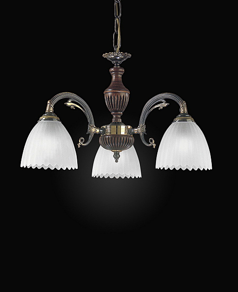 Трёх-рожковая классическая люстра. Украсит интерьер в классическом стиле. Благородная, изящная серия. Корпус люстры состоит из металла с покрытием BRONZO SF. и ценных пород дерева. Плафоны - VETRO SATIN.