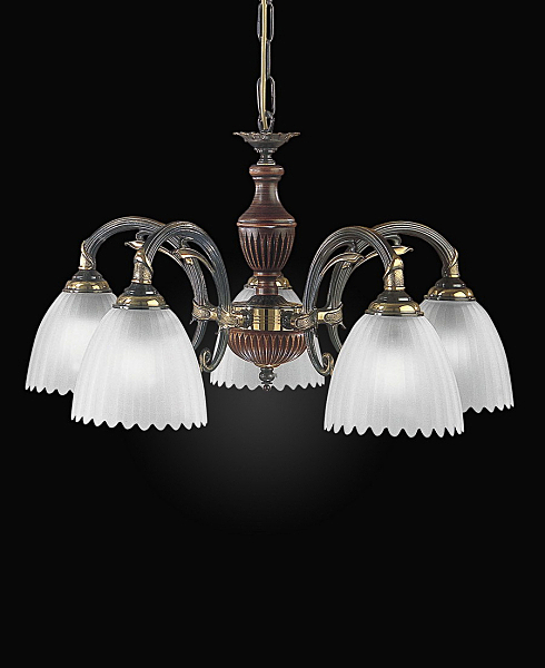 Пяти-рожковая классическая люстра. Украсит интерьер в классическом стиле. Благородная, изящная серия. Корпус люстры состоит из металла с покрытием BRONZO SF. и ценных пород дерева. Плафоны - VETRO SATIN.