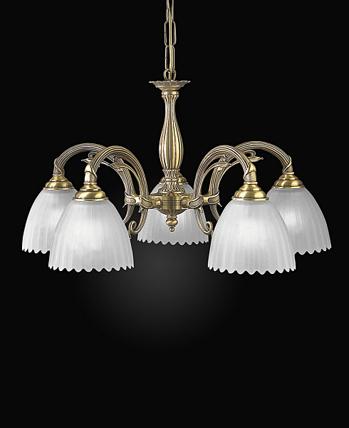 Пяти-рожковая классическая люстра. Украсит интерьер в классическом стиле. Благородная, изящная серия. Корпус люстры состит из металла с покрытием BRONZO ARTE. Плафоны - VETRO SATIN.