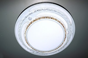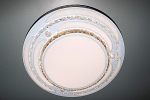 Изделие рассчитано на 40 Вт, а общая мощность лампы 60. Потолочный светодиодный светильникможет осветить до 25 КВ метров.Тип цоколя - LED, Степень защиты 20 IP 3 режима, пульт управления, металл, акрил.