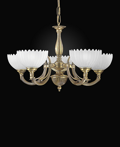 Пяти-рожковая классическая люстра. Украсит интерьер в классическом стиле. Благородная, изящная серия. Корпус люстры состит из металла с покрытием BRONZO ARTE. Плафоны - VETRO SATIN.