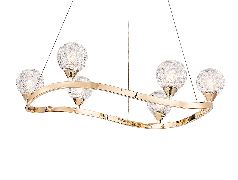 Допускается отличие страны-изготовителя, указанной в характеристиках. Линии производства могут находиться в нескольких государствах. Это не влияет на качество изготовления товара: все заводы данного бренда работают по общим стандартам, а готовые изделия проходят соответствующий контроль.США Коллекция 3800 ЦветЦвет арматуры Светлое золото Цвет Золото Материал арматуры Железо крашеное Цвет плафона прозрачный Материал плафона Стекло РазмерыВысота (мм) 150 Диаметр (мм) 720 Высота минимальная (мм) 150 Ширина (мм) 720 ЭлектрикаКоличество ламп (шт) 6 Цоколь G9 Мощность лампы (Вт) 9 Дополнительная информацияТип подвеса На тросах -