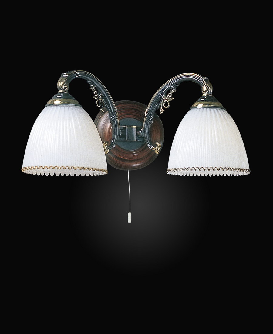 Двух-рожковое бра. Украсит интерьер в классическом стиле. Благородная, изящная серия. Корпус светильника состоит из металла с покрытием BRONZO SF. и ценных пород дерева. Плафоны - VETRO BLANCO.