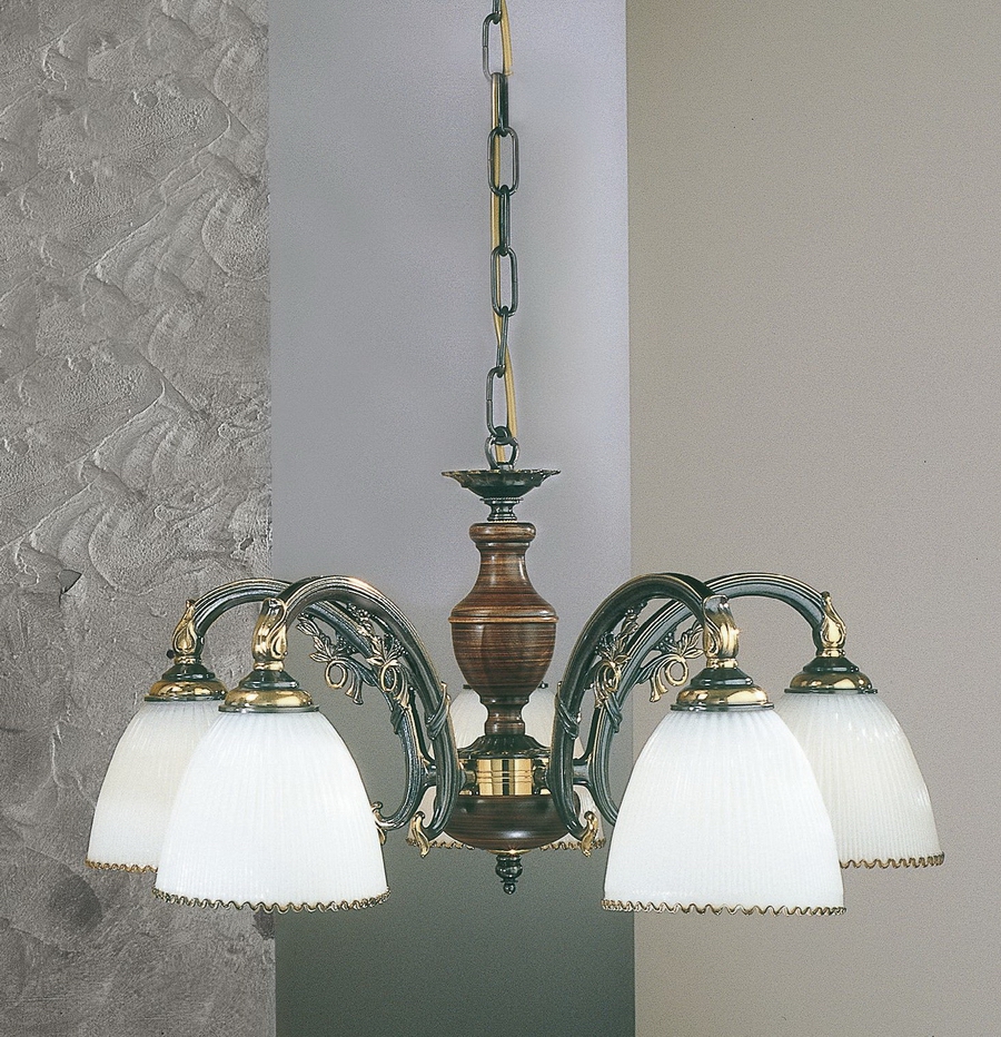 Пяти-рожковая классическая люстра. Украсит интерьер в классическом стиле. Благородная, изящная серия. Корпус люстры состоит из металла с покрытием BRONZO SF. и ценных пород дерева. Плафоны - VETRO BLANCO.