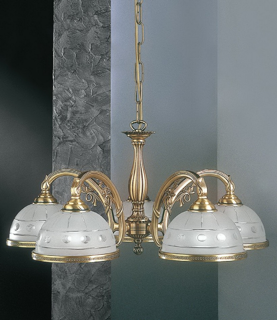 Пяти-рожковая классическая люстра. Украсит интерьер в классическом стиле. Благородная, изящная серия. Корпус люстры имеет покрытие BRONZO ARTE. Плафоны - VETRO SATIN MOLATO.