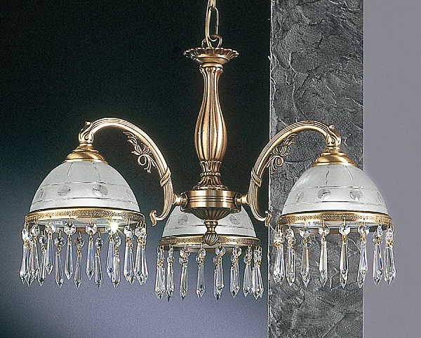 Трёх-рожковая классическая люстра. Украсит интерьер в классическом стиле. Благородная, изящная серия. Корпус люстры имеет покрытие BRONZO ARTE. Плафоны - VETRO SATIN MOLATO. Украшены хрустальными подвесками.