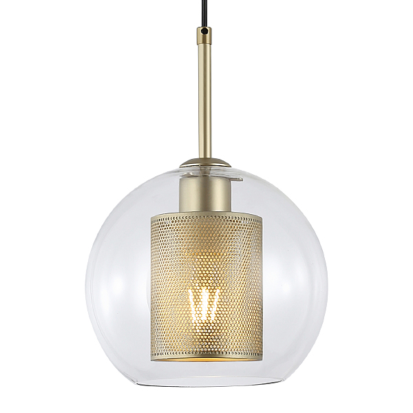 Подвесной Светильник 1X60Вт E27, Металл/Стекло, Сатинированное Золото/Прозрачный Плафон