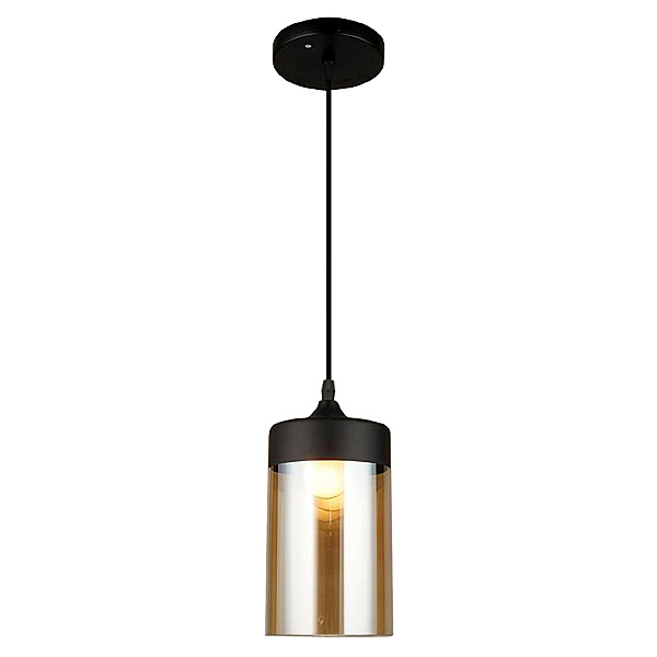 Подвесной светильник 1x60Вт E27, металл/стекло, черный/янтарный плафон