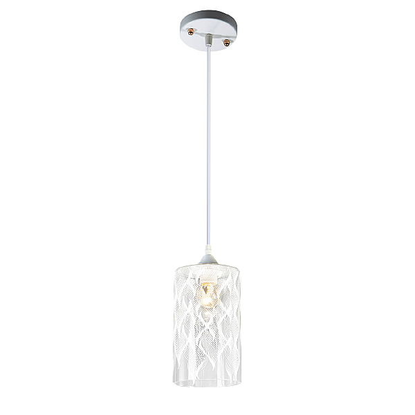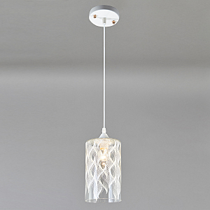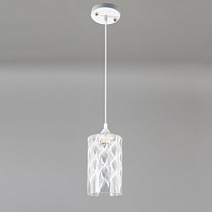 Подвесной светильник 1x60Вт E27, металл/стекло, белый/прозрачный с белым рисунком плафон
