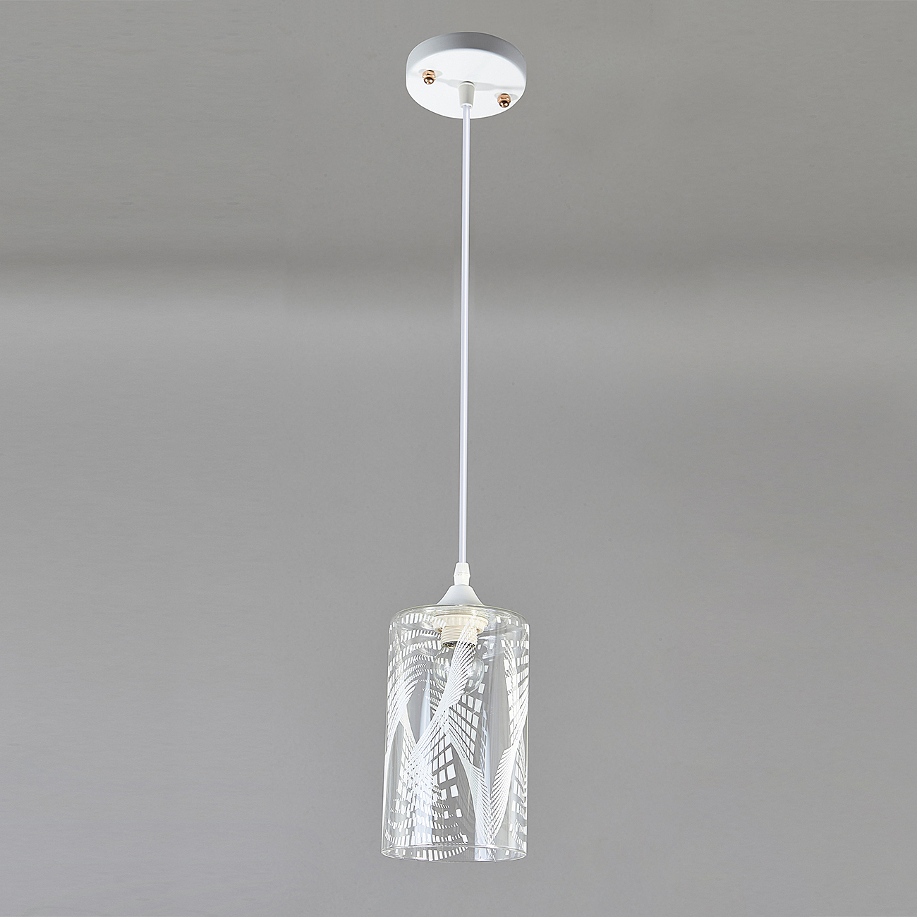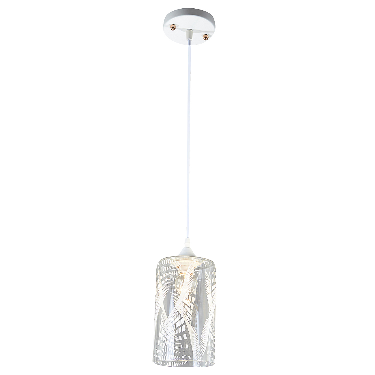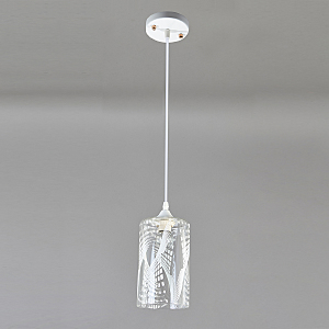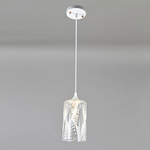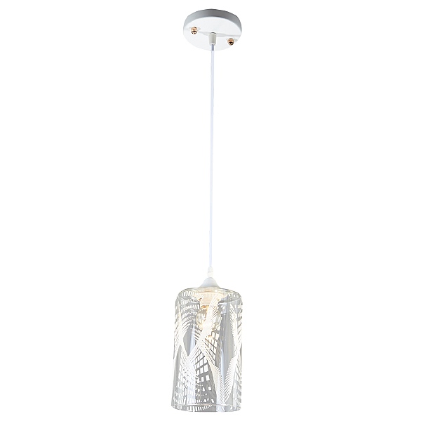 Подвесной светильник 1x60Вт E27, металл/стекло, белый/прозрачный с белым рисунком плафон