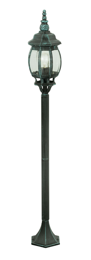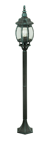 Допускается отличие страны-изготовителя, указанной в характеристиках. Линии производства могут находиться в нескольких государствах. Это не влияет на качество изготовления товара: все заводы данного бренда работают по общим стандартам, а готовые изделия проходят соответствующий контроль.Австрия Коллекция Outdoor Classic ЦветЦвет арматуры Зеленый Цвет Зеленый Материал арматуры Металл Цвет плафона прозрачный Материал плафона Стекло РазмерыВысота (мм) 1200 Диаметр (мм) 150 Ширина (мм) 150 ЭлектрикаКоличество ламп (шт) 1 Цоколь E27 Тип лампы Накаливания Лампочки в комплекте Нет в комплекте Возможность подключение диммера Есть Мощность лампы (Вт) 100 Общая мощность (Вт) 100 Напряжение (В) 220 Площадь освещения 6 Дополнительная информацияСтепень защиты (IP) IP23 Вес (Кг) 1.8 -