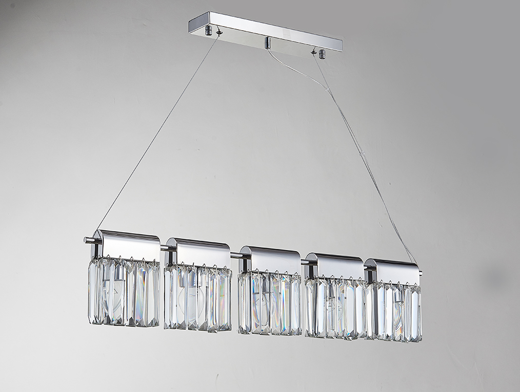 Допускается отличие страны-изготовителя, указанной в характеристиках. Линии производства могут находиться в нескольких государствах. Это не влияет на качество изготовления товара: все заводы данного бренда работают по общим стандартам, а готовые изделия проходят соответствующий контроль.США Коллекция 4200 ЦветЦвет арматуры Хром Цвет Хром Материал арматуры Железо крашеное Цвет декора прозрачный Материал декора Хрусталь РазмерыВысота (мм) 1380 Длина (мм) 850 Высота минимальная (мм) 180 Ширина (мм) 50 ЭлектрикаКоличество ламп (шт) 5 Цоколь E14 Мощность лампы (Вт) 60 Напряжение (В) 220 Дополнительная информацияТип подвеса На тросах -