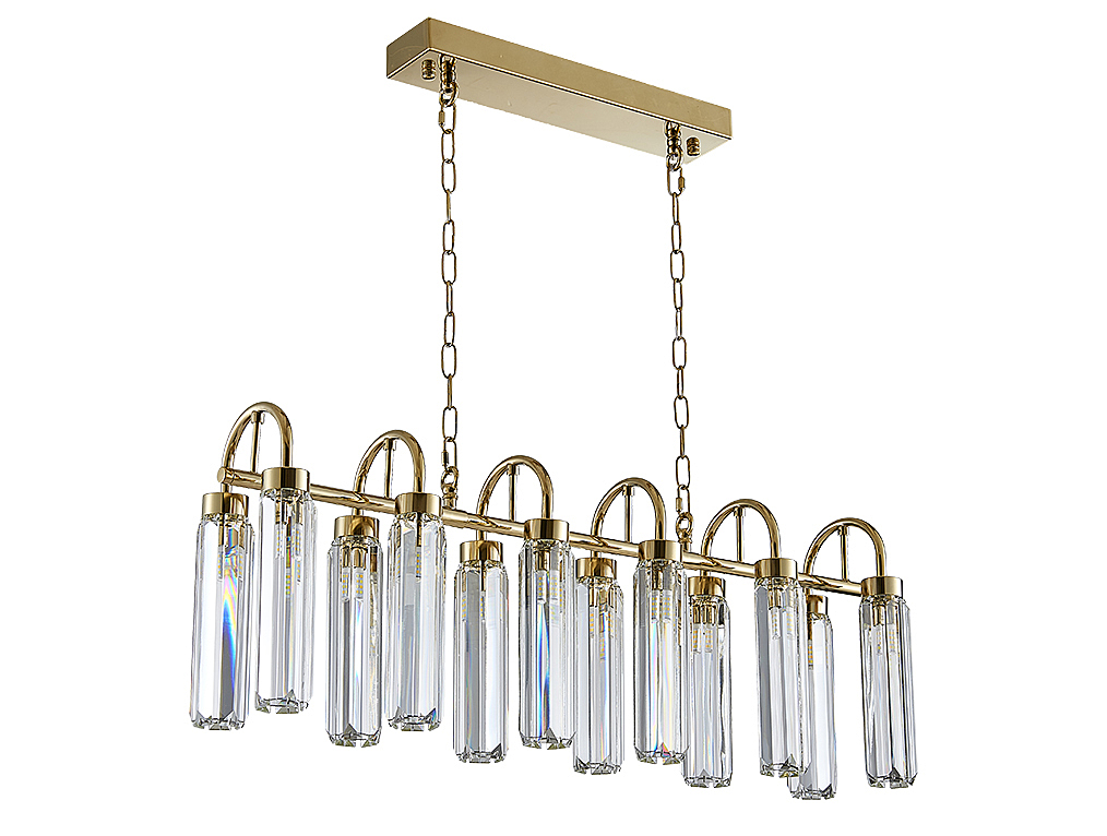Допускается отличие страны-изготовителя, указанной в характеристиках. Линии производства могут находиться в нескольких государствах. Это не влияет на качество изготовления товара: все заводы данного бренда работают по общим стандартам, а готовые изделия проходят соответствующий контроль.США Коллекция 4520 ЦветЦвет арматуры Золото Цвет Золото Материал арматуры Нержавеющая сталь Цвет плафона прозрачный Материал плафона Стекло РазмерыВысота (мм) 300 Длина (мм) 800 Высота минимальная (мм) 300 Ширина (мм) 160 ЭлектрикаКоличество ламп (шт) 12 Цоколь G9 Мощность лампы (Вт) 60 Дополнительная информацияТип подвеса На цепи -