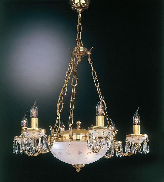 Корпус люстры изготовлен из латуни, и имеет высококачественное покрытие ORO FRANCESE.