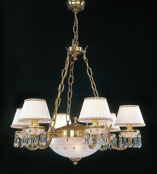 Корпус люстры изготовлен из латуни, и имеет высококачественное покрытие ORO FRANCESE.