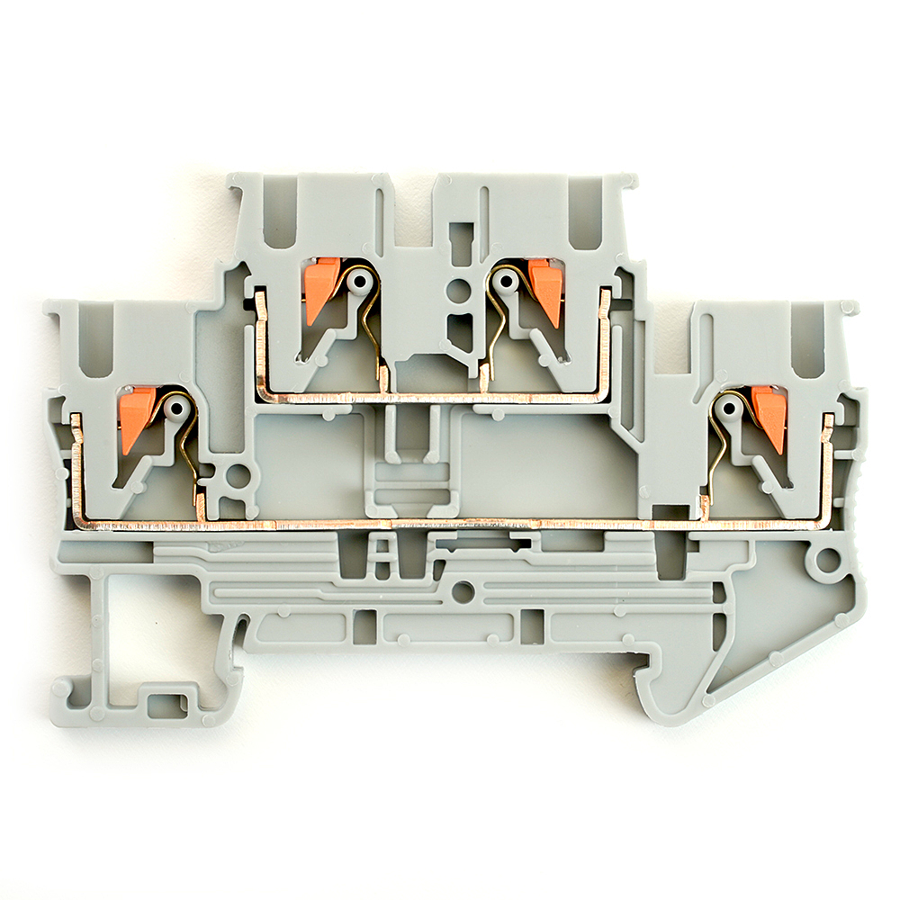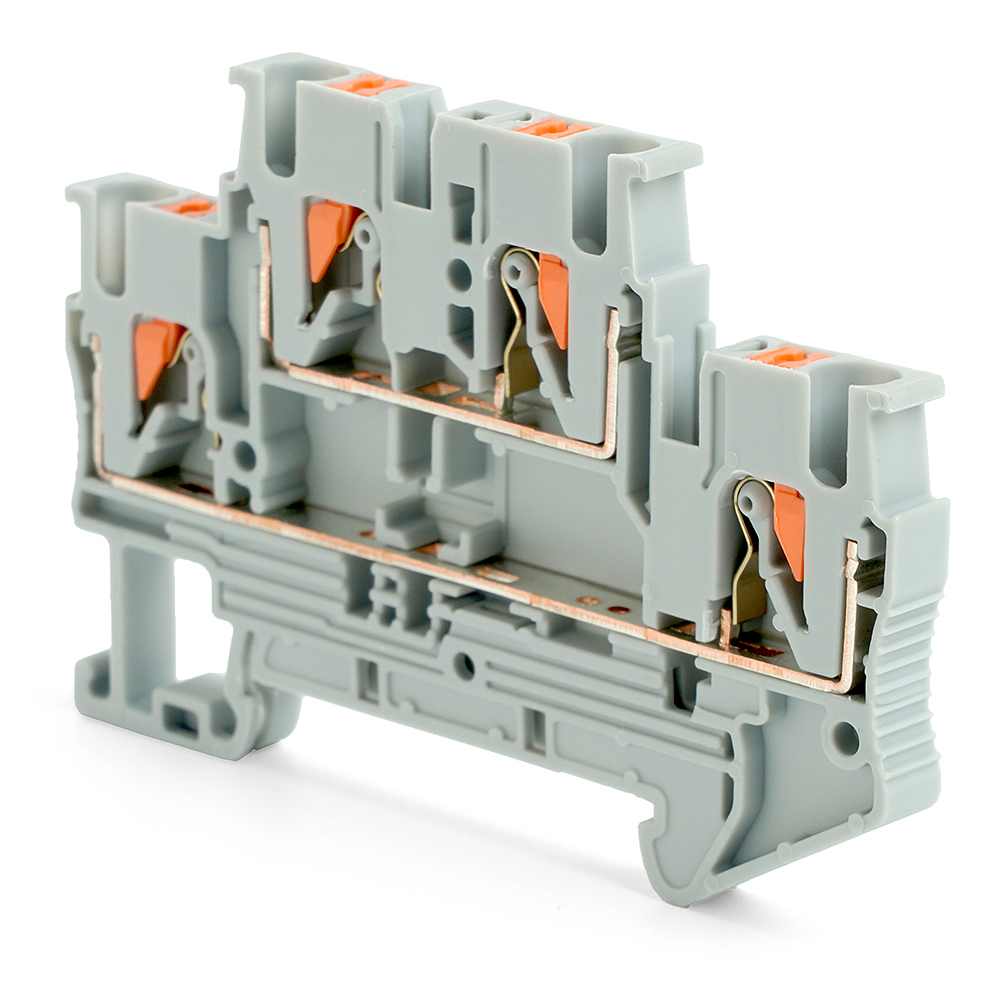 LD575-1-25 ЗНИ Зажим самозажимной, 4-проводной проходной 2 уровня 2,5 мм (JXB PT 2,5), серый
