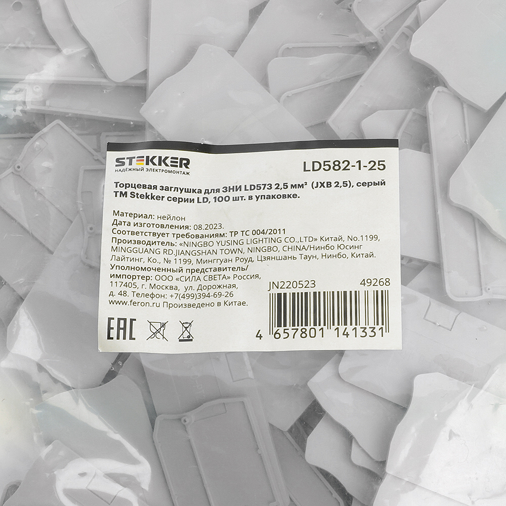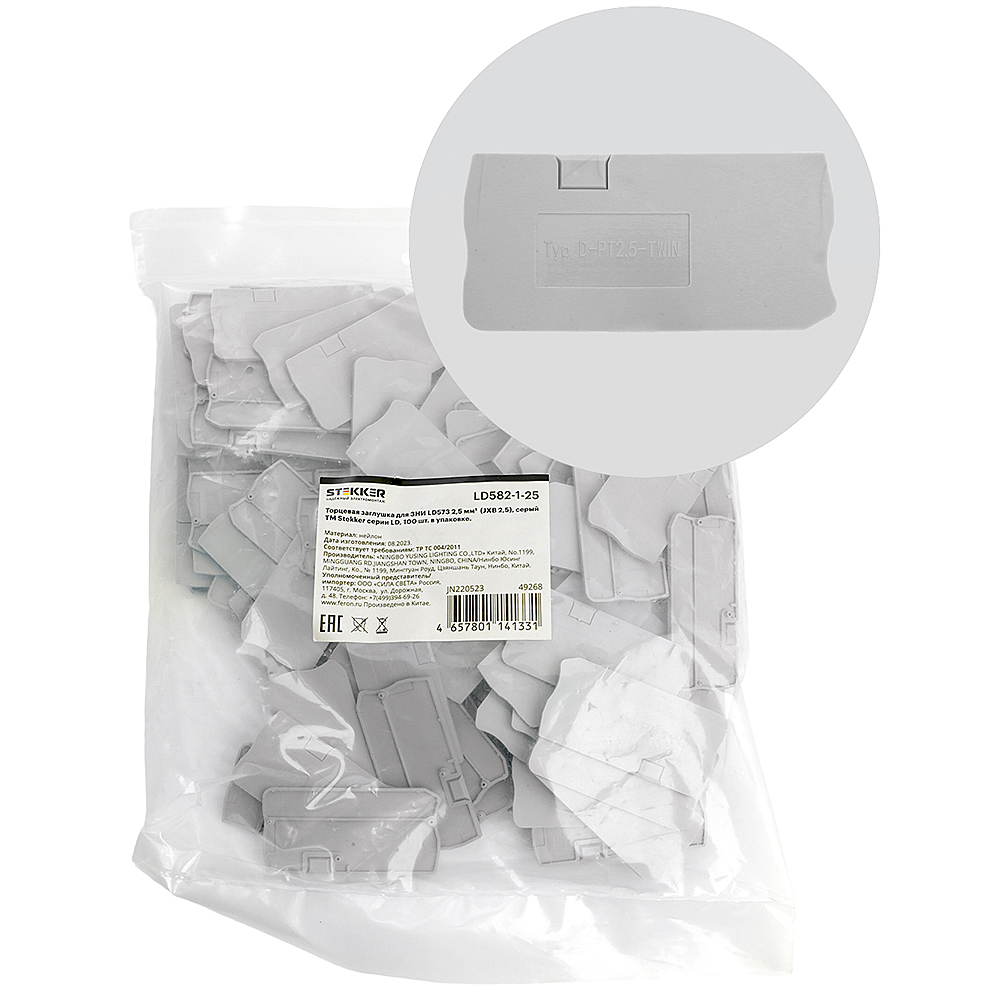 LD582-1-25 Торцевая заглушка для ЗНИ LD573 2,5 мм (JXB PT 2,5), серый