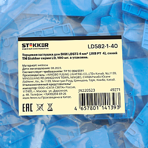 LD582-1-40 Торцевая заглушка для ЗНИ LD573 4 мм (JXB PT 4), синий