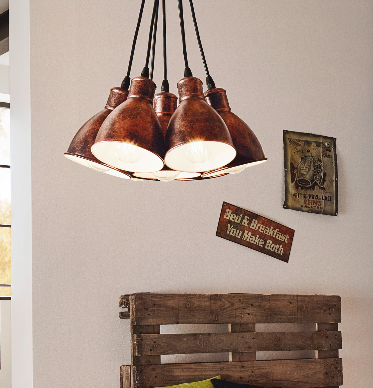 Допускается отличие страны-изготовителя, указанной в характеристиках. Линии производства могут находиться в нескольких государствах. Это не влияет на качество изготовления товара: все заводы данного бренда работают по общим стандартам, а готовые изделия проходят соответствующий контроль.Австрия Коллекция Priddy ЦветЦвет арматуры Медь Цвет Медь Материал арматуры Металл Цвет плафона медь Материал плафона Металл РазмерыВысота (мм) 1100 Диаметр (мм) 385 Ширина (мм) 385 ЭлектрикаКоличество ламп (шт) 7 Цоколь E27 Тип лампы Накаливания Лампочки в комплекте Нет в комплекте Возможность подключение диммера Есть Мощность лампы (Вт) 60 Общая мощность (Вт) 420 Напряжение (В) 220 Площадь освещения 23 Дополнительная информацияСтепень защиты (IP) IP20 Вес (Кг) 2.14 Тип подвеса На тросах -