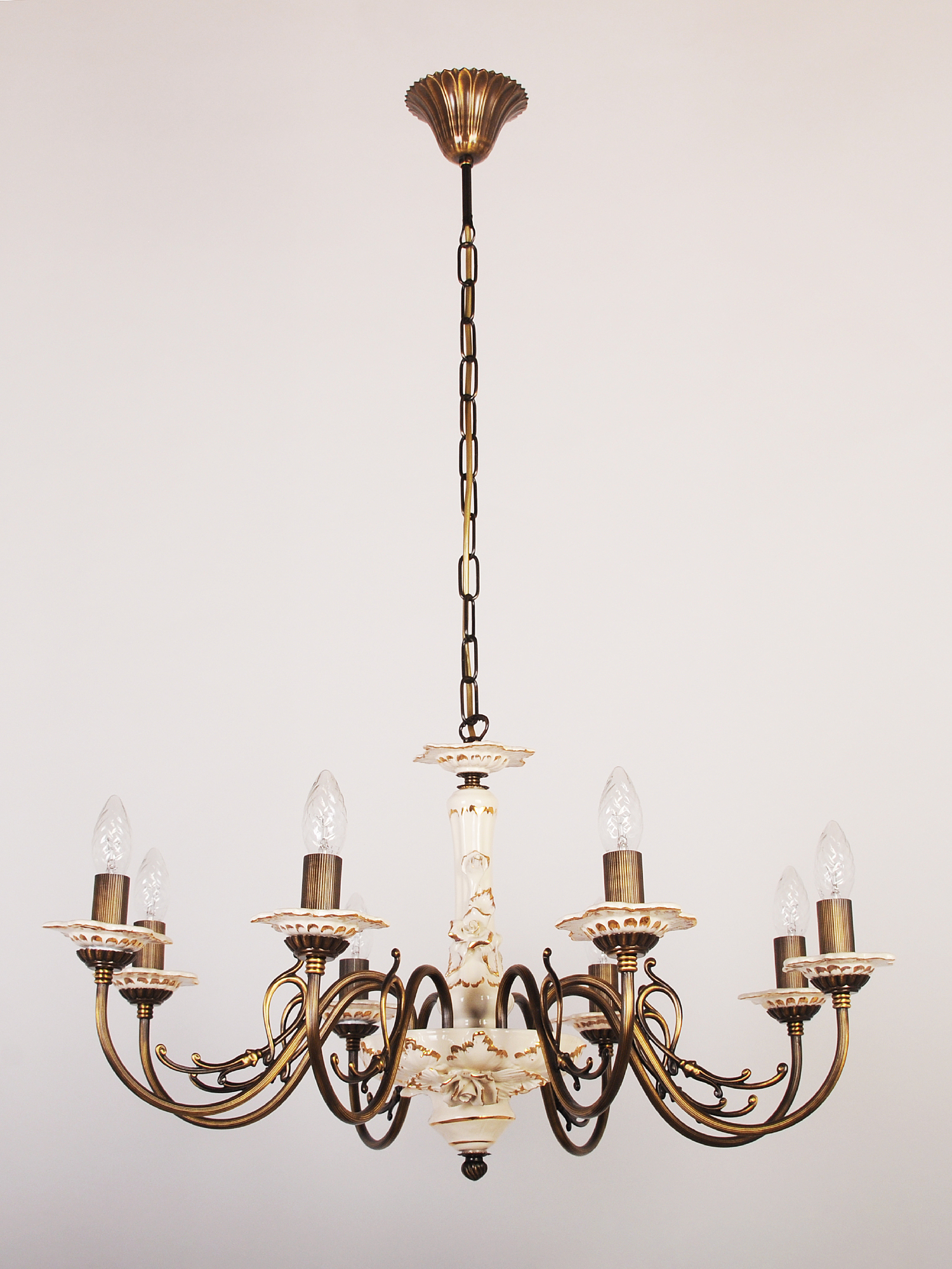 Допускается отличие страны-изготовителя, указанной в характеристиках. Линии производства могут находиться в нескольких государствах. Это не влияет на качество изготовления товара: все заводы данного бренда работают по общим стандартам, а готовые изделия проходят соответствующий контроль.Италия ЦветЦвет арматуры Бронза Цвет Бронза Материал арматуры Металл РазмерыВысота (мм) 410 Диаметр (мм) 750 Ширина (мм) 750 ЭлектрикаКоличество ламп (шт) 8 Цоколь E14 Тип лампы Светодиодная, Накаливания Мощность лампы (Вт) 40 Напряжение (В) 220 Площадь освещения 24 Дополнительная информацияСпособ крепления Крюк Степень защиты (IP) IP20 Вес (Кг) 9,5 Тип подвеса На цепи -