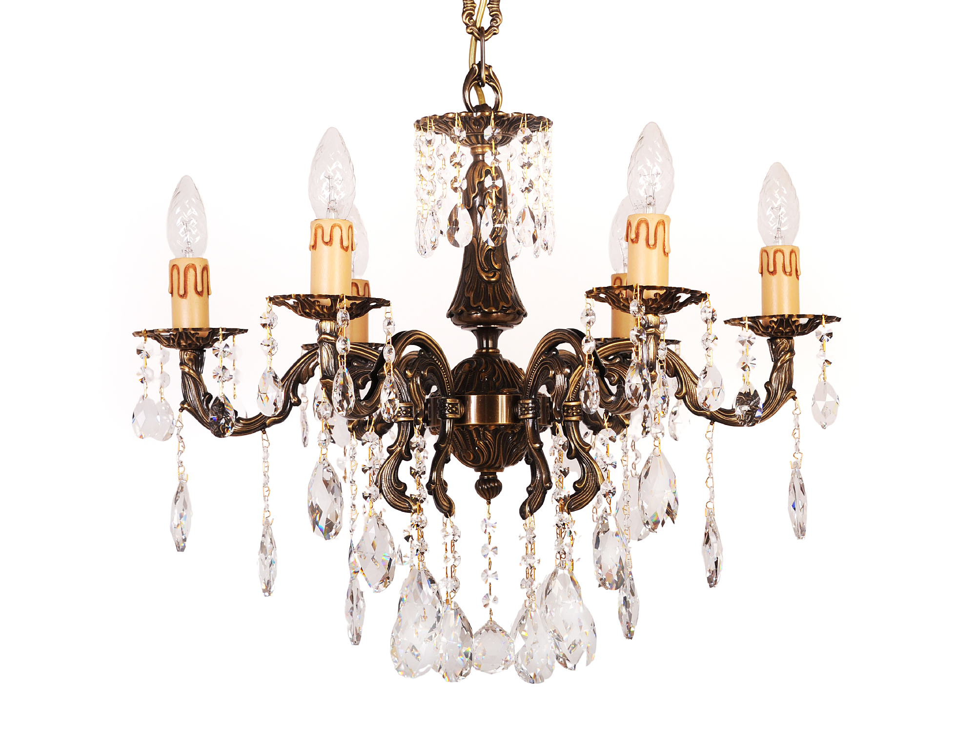 Допускается отличие страны-изготовителя, указанной в характеристиках. Линии производства могут находиться в нескольких государствах. Это не влияет на качество изготовления товара: все заводы данного бренда работают по общим стандартам, а готовые изделия проходят соответствующий контроль.Италия ЦветЦвет арматуры Бронза Цвет Бронза Материал арматуры Латунь РазмерыВысота (мм) 540 Диаметр (мм) 590 Ширина (мм) 590 ЭлектрикаКоличество ламп (шт) 6 Цоколь E14 Тип лампы Светодиодная, Накаливания Мощность лампы (Вт) 40 Напряжение (В) 220 Площадь освещения 21 Дополнительная информацияСпособ крепления Крюк Степень защиты (IP) IP20 Вес (Кг) 8 Тип подвеса На цепи -