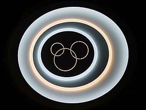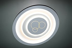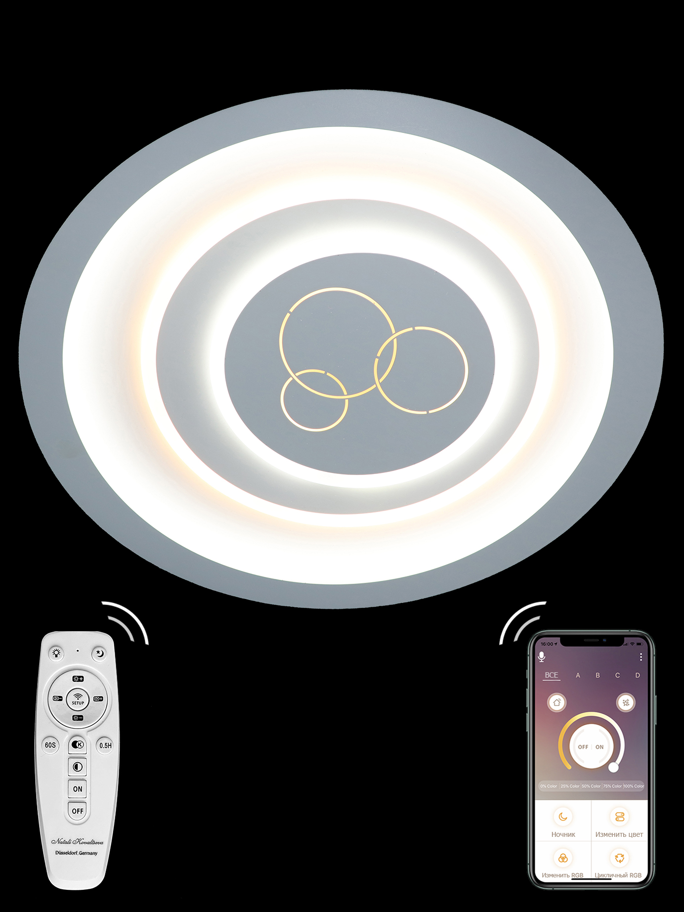 Изделие рассчитано на 60 Вт, общая мощность лампы 80. Потолочный светодиодный светильник может осветить до 25 метров2.Тип цоколя - LED, Степень защиты 20 IP 3 режима, пульт управления, металл, акрил.