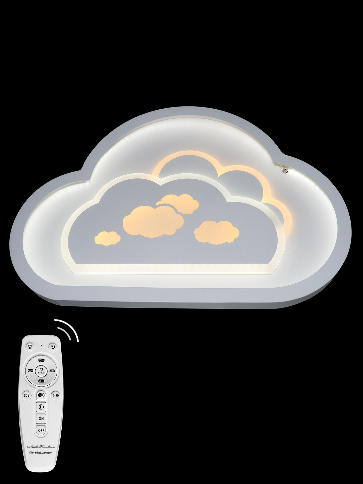 Изделие рассчитано на 60 Вт, общая мощность лампы 80. Потолочный светодиодный светильник может осветить до 25 метров2.Тип цоколя - LED, Степень защиты 20 IP 3 режима, пульт управления, металл, акрил.
