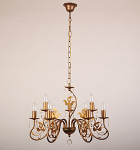 Допускается отличие страны-изготовителя, указанной в характеристиках. Линии производства могут находиться в нескольких государствах. Это не влияет на качество изготовления товара: все заводы данного бренда работают по общим стандартам, а готовые изделия проходят соответствующий контроль.Германия Коллекция 520 ЦветЦвет арматуры Золото Цвет Золото Материал арматуры Металл РазмерыВысота (мм) 450 Диаметр (мм) 600 ЭлектрикаКоличество ламп (шт) 9 Цоколь E14 Тип лампы Светодиодная, Накаливания Мощность лампы (Вт) 40 Напряжение (В) 220 Площадь освещения 22 Дополнительная информацияСпособ крепления Крюк Степень защиты (IP) IP20 Место установки на потолок Вес (Кг) 5,4 Тип подвеса На цепи -