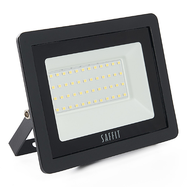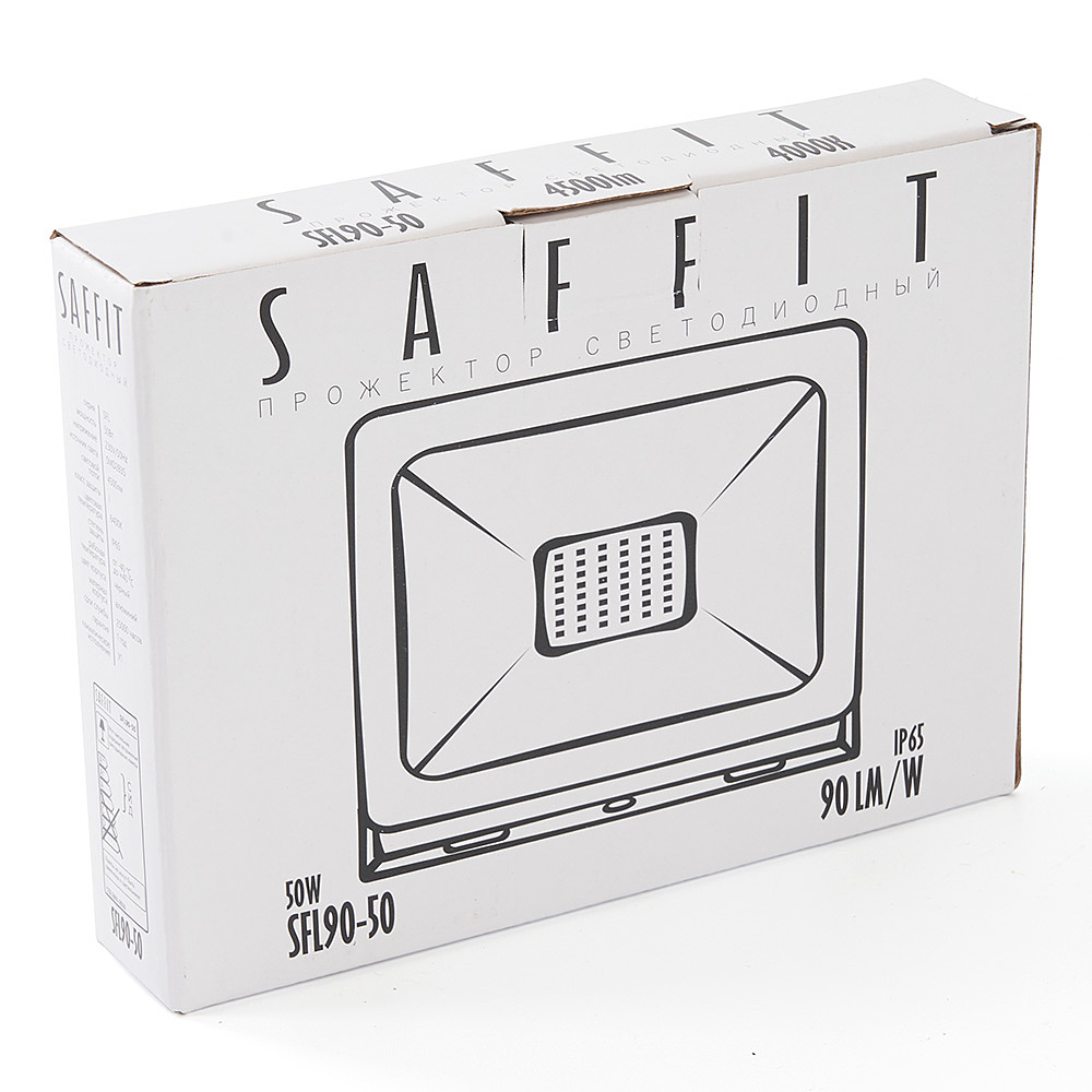 Прожектор светодиодный многоматричный с монтажным креплением на кронштейн, (ДО) SAFFIT SFL90-50, 50W, 4000К (белый), 230V/50Гц, 4500Lm, IP65, угол рассеивания 120?, 48*SMD2835, раб.t -40?C - +40?C, цвет чёрный, корпус алюминий литой под давлением + стекло, 205*30*160 мм