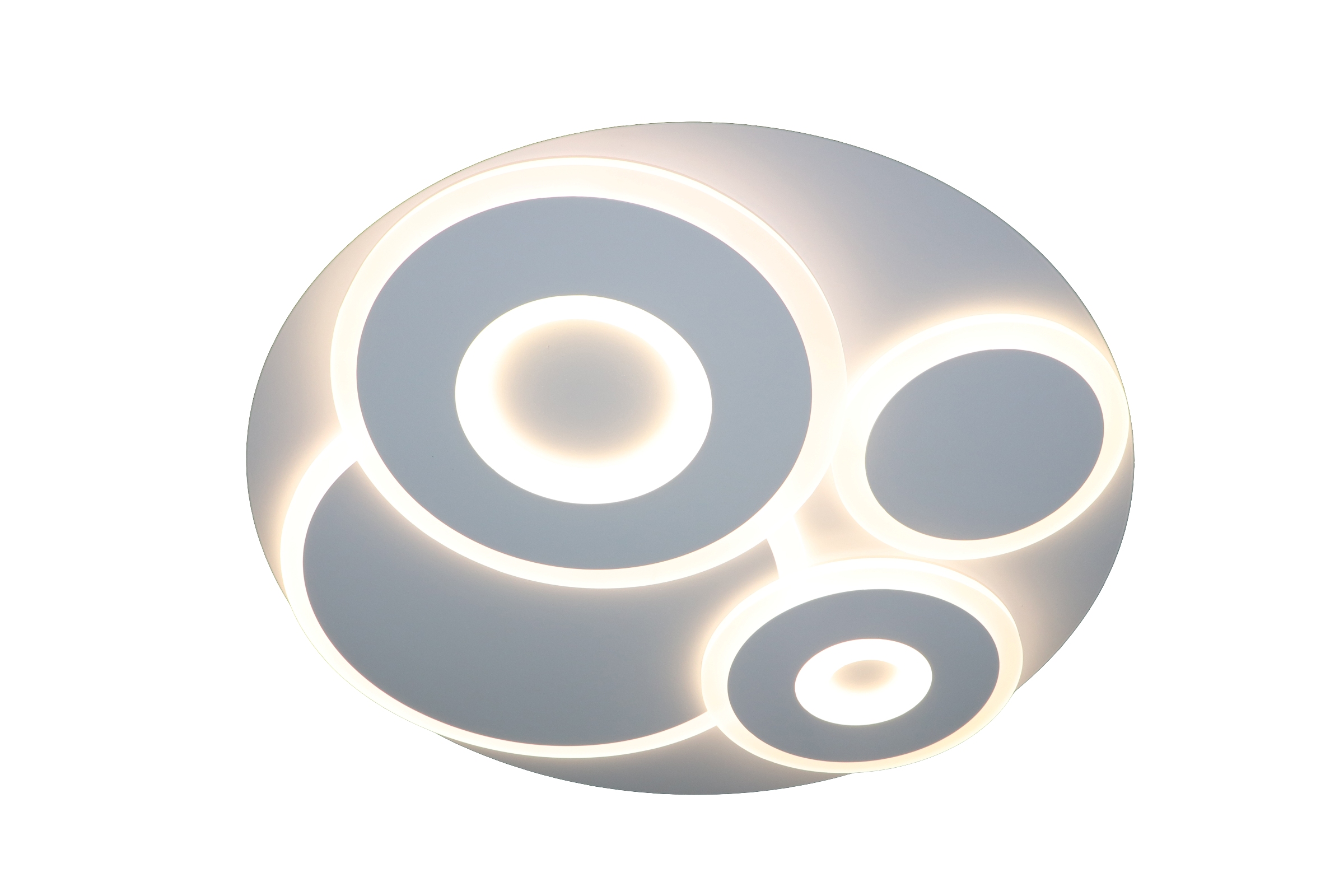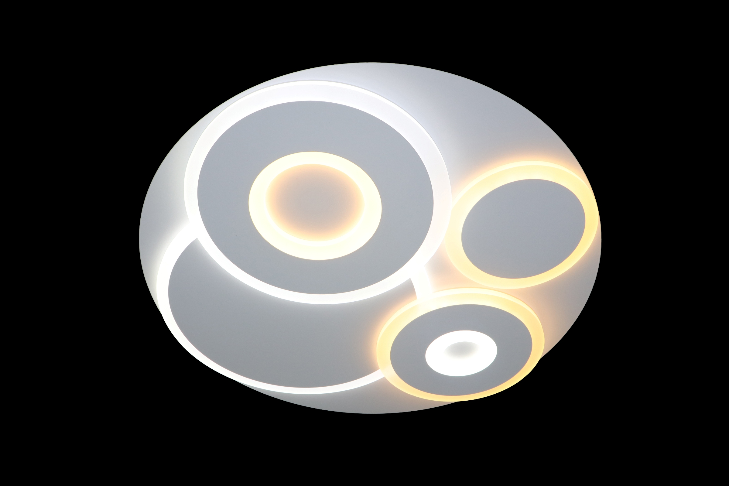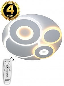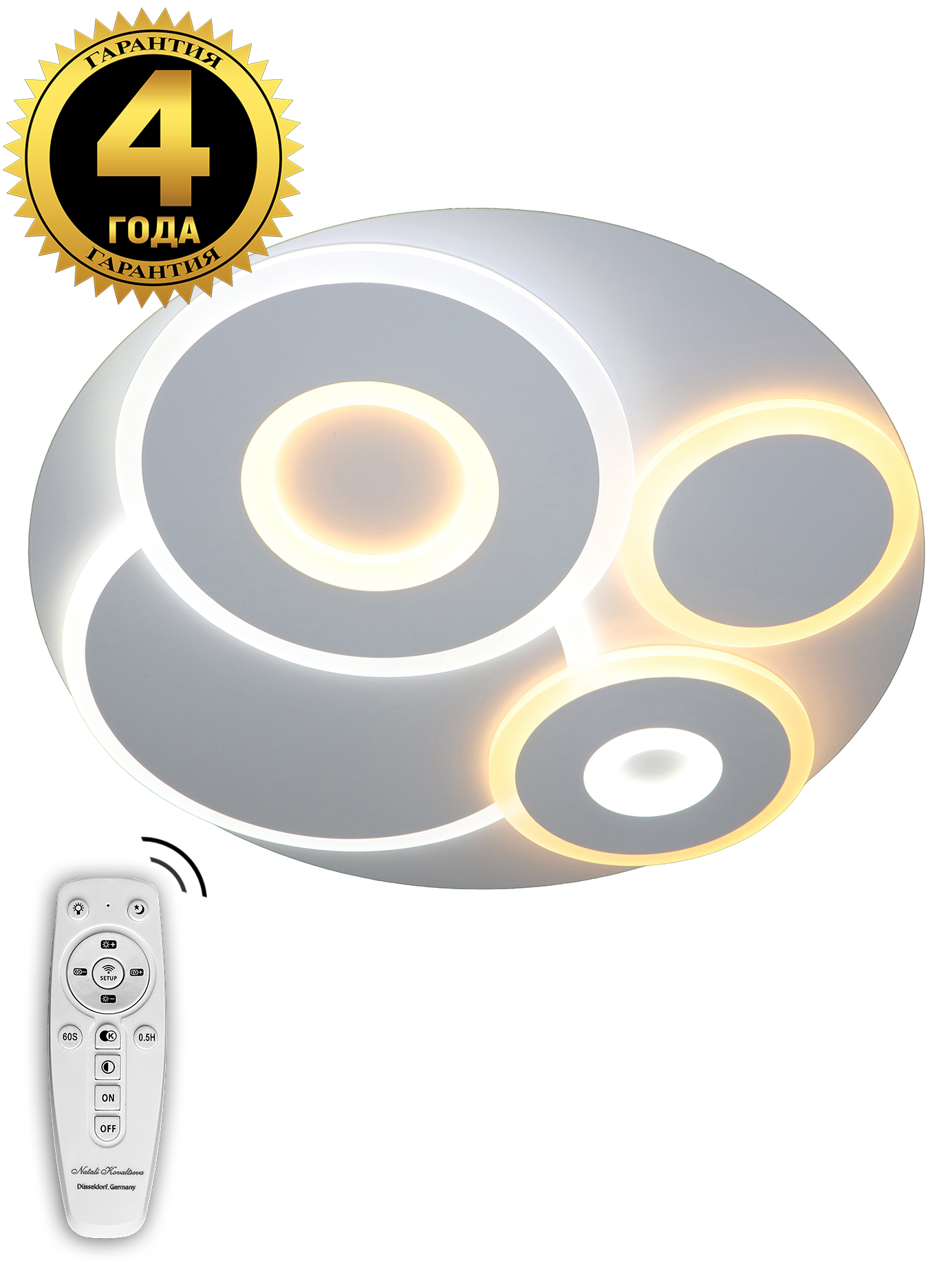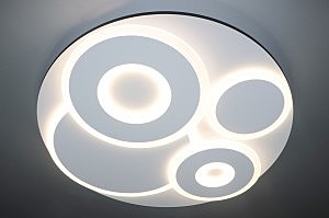 Изделие рассчитано на 60 Вт, общая мощность лампы 80. Потолочный светодиодный светильник может осветить до 25 метров2.Тип цоколя - LED, Степень защиты 20 IP 3 режима, пульт управления, металл, акрил.