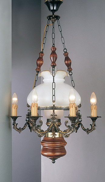 Корпус светильника изготовлен из металла и ценных пород дерева.