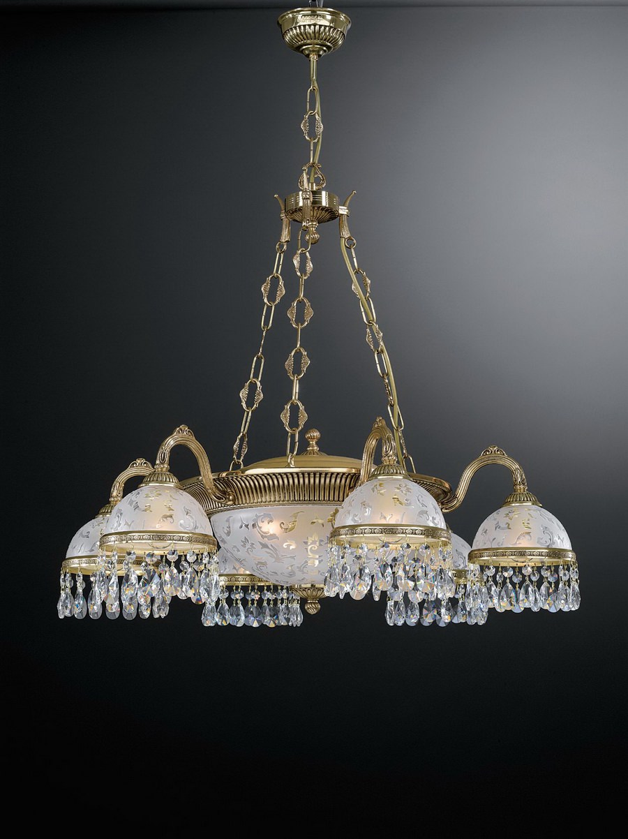 Корпус люстры изготовлен из латуни, и имеет высококачественное покрытие ORO FRANCESE.
