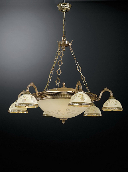 Корпус люстры изготовлен из латуни, и имеет высококачественное покрытие ORO FRANCESE.