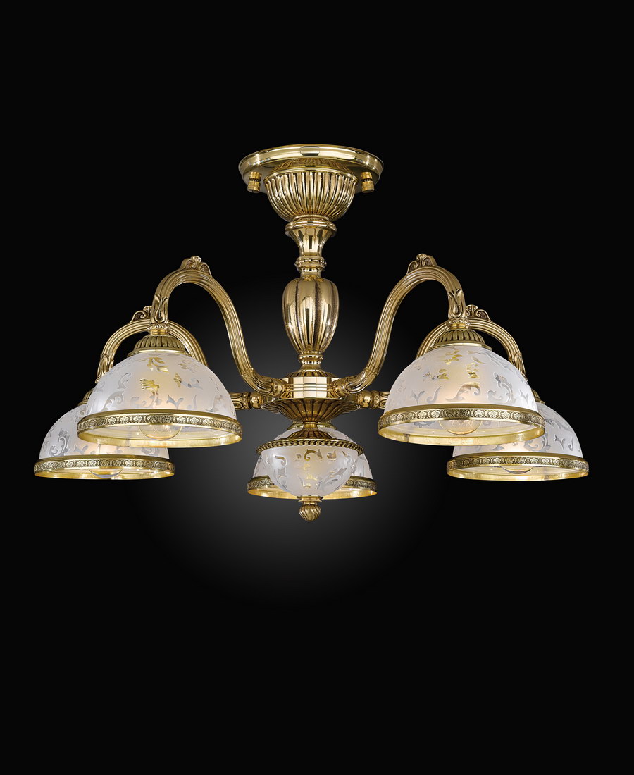 Корпус люстры изготовлен из латуни, и имеет высококачественное покрытие ORO FRANCESE.