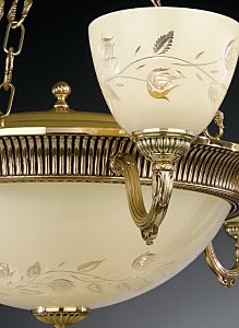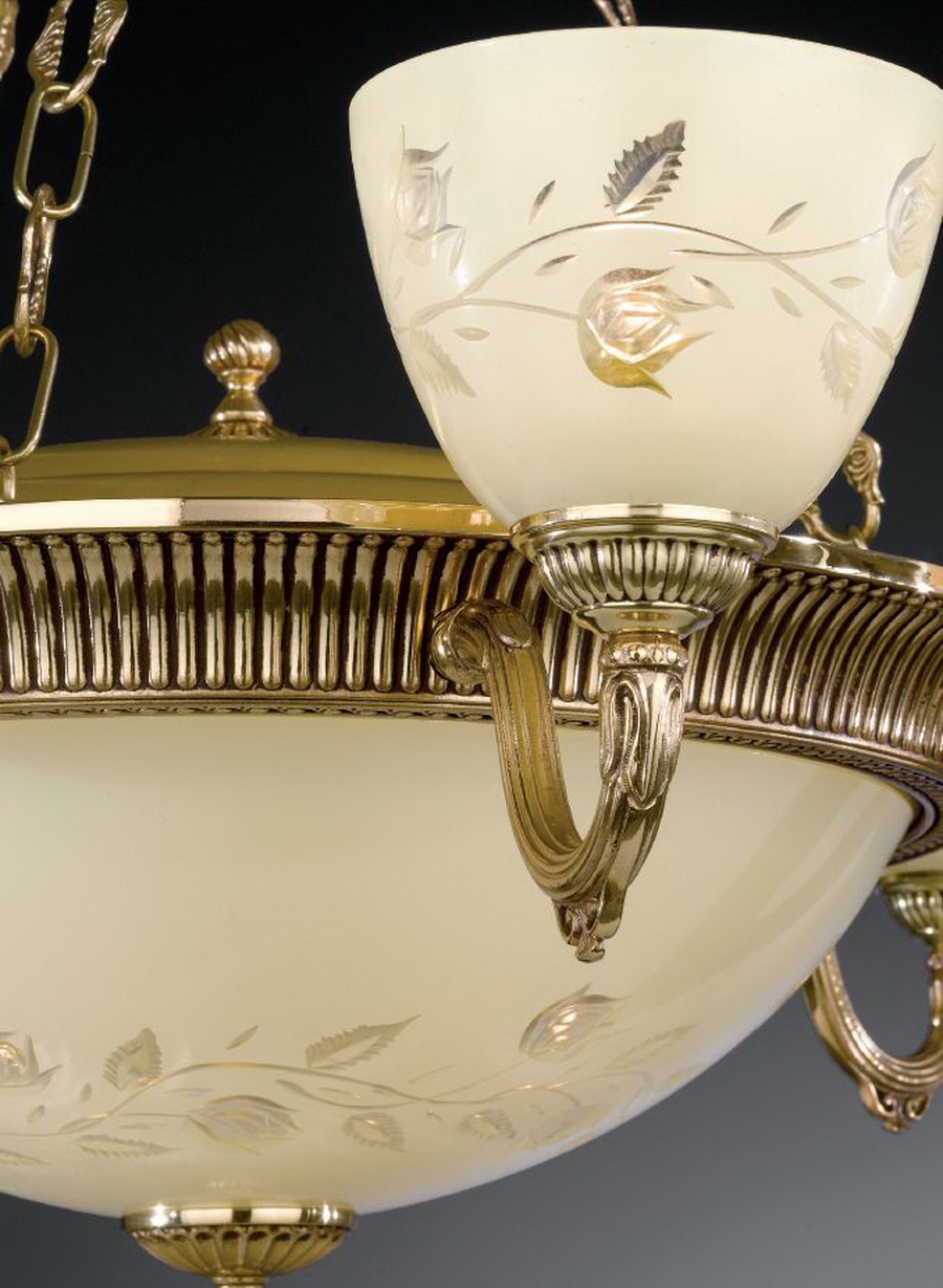 Корпус люстры изготовлен из латуни, и имеет высококачественное покрытие ORO FRANCESE.