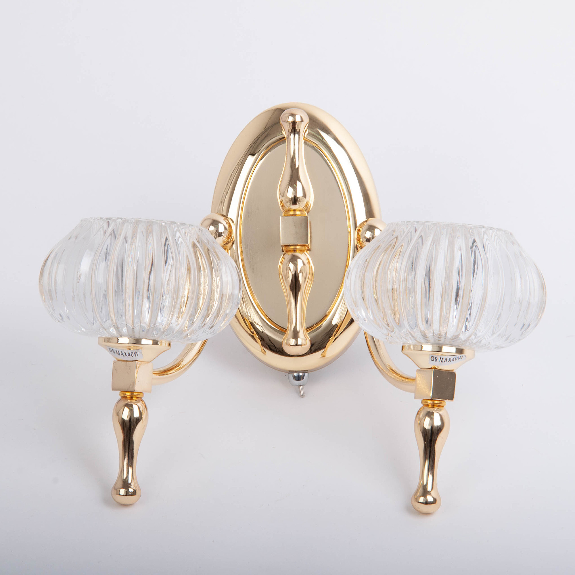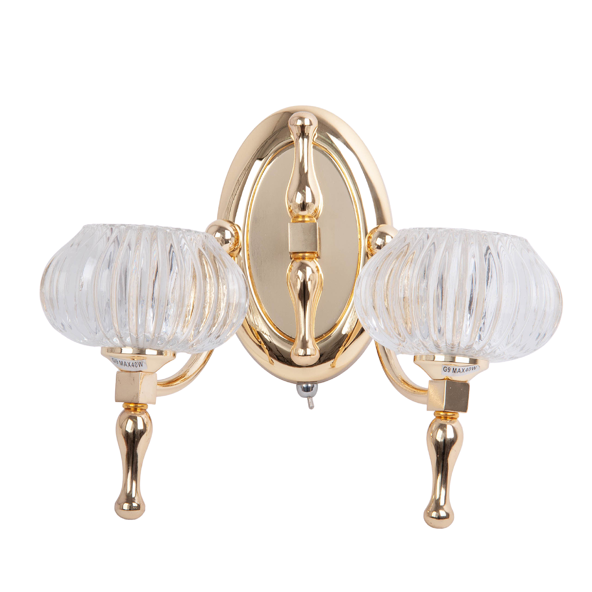 Допускается отличие страны-изготовителя, указанной в характеристиках. Линии производства могут находиться в нескольких государствах. Это не влияет на качество изготовления товара: все заводы данного бренда работают по общим стандартам, а готовые изделия проходят соответствующий контроль.Германия ЦветЦвет арматуры Золото Цвет Золото Материал арматуры Металл Материал плафона Стекло РазмерыВысота (мм) 230 Ширина (мм) 270 ЭлектрикаКоличество ламп (шт) 2 Цоколь G9 Тип лампы Светодиодная, Накаливания Лампочки в комплекте Нет в комплекте Мощность лампы (Вт) 40 Напряжение (В) 220 Площадь освещения 6 Дополнительная информацияСпособ крепления Планка Тип выключателя Выключатель на корпусе Место установки на стену -
