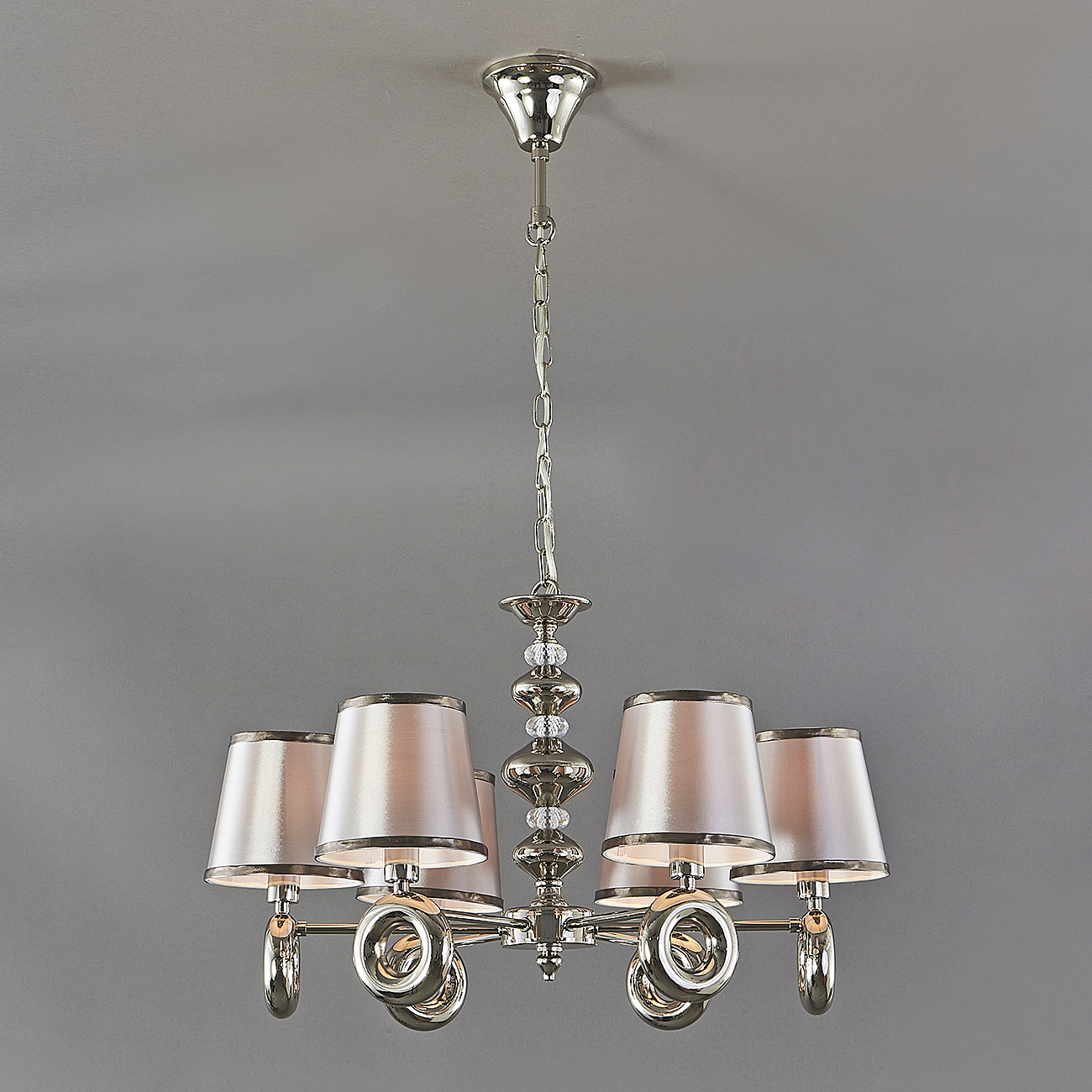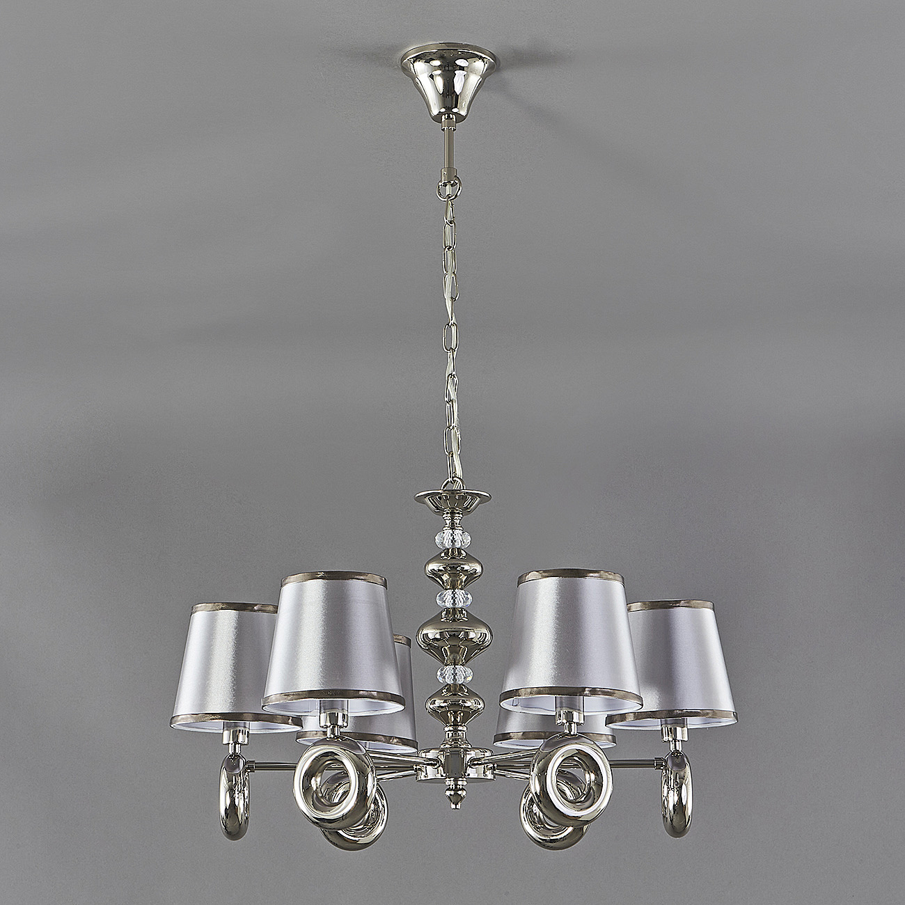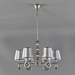 Подвесной светильник 6x40Вт E14, металл/ткань, никель/серый плафон