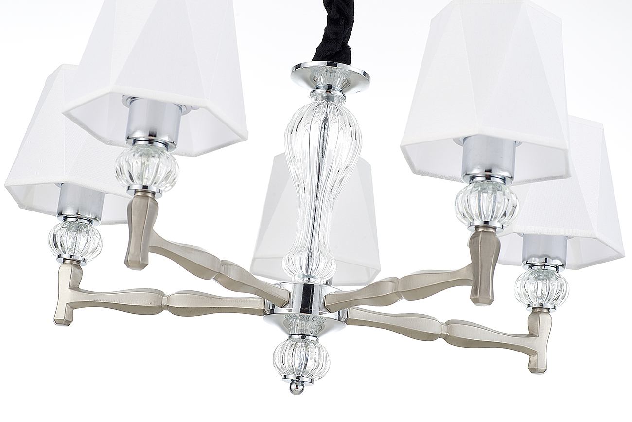 Допускается отличие страны-изготовителя, указанной в характеристиках. Линии производства могут находиться в нескольких государствах. Это не влияет на качество изготовления товара: все заводы данного бренда работают по общим стандартам, а готовые изделия проходят соответствующий контроль.Великобритания Коллекция Arcadia ЦветЦвет арматуры Никель Цвет Никель Материал арматуры Металл, Стекло Цвет плафона Белый Материал плафона Ткань РазмерыВысота (мм) 830 Длина (мм) 630 Ширина (мм) 630 Диаметр абажура-плафона 160 Высота абажура-плафона 132 ЭлектрикаКоличество ламп (шт) 5 Цоколь E27 Мощность лампы (Вт) 60 Напряжение (В) 220 Площадь освещения 18 Дополнительная информацияСпособ крепления Крюк Степень защиты (IP) IP20 Вес (Кг) 4.1 Тип подвеса На цепи -