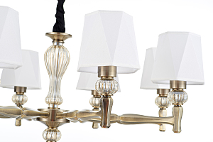 Допускается отличие страны-изготовителя, указанной в характеристиках. Линии производства могут находиться в нескольких государствах. Это не влияет на качество изготовления товара: все заводы данного бренда работают по общим стандартам, а готовые изделия проходят соответствующий контроль.Великобритания Коллекция Arcadia ЦветЦвет арматуры Бронза Цвет Бронза Материал арматуры Металл, Стекло Цвет плафона Белый Материал плафона Ткань РазмерыВысота (мм) 830 Длина (мм) 905 Ширина (мм) 905 Диаметр абажура-плафона 160 Высота абажура-плафона 132 ЭлектрикаКоличество ламп (шт) 8 Цоколь E27 Мощность лампы (Вт) 60 Напряжение (В) 220 Площадь освещения 30 Дополнительная информацияСпособ крепления Крюк Степень защиты (IP) IP20 Вес (Кг) 3.3 Тип подвеса На цепи -