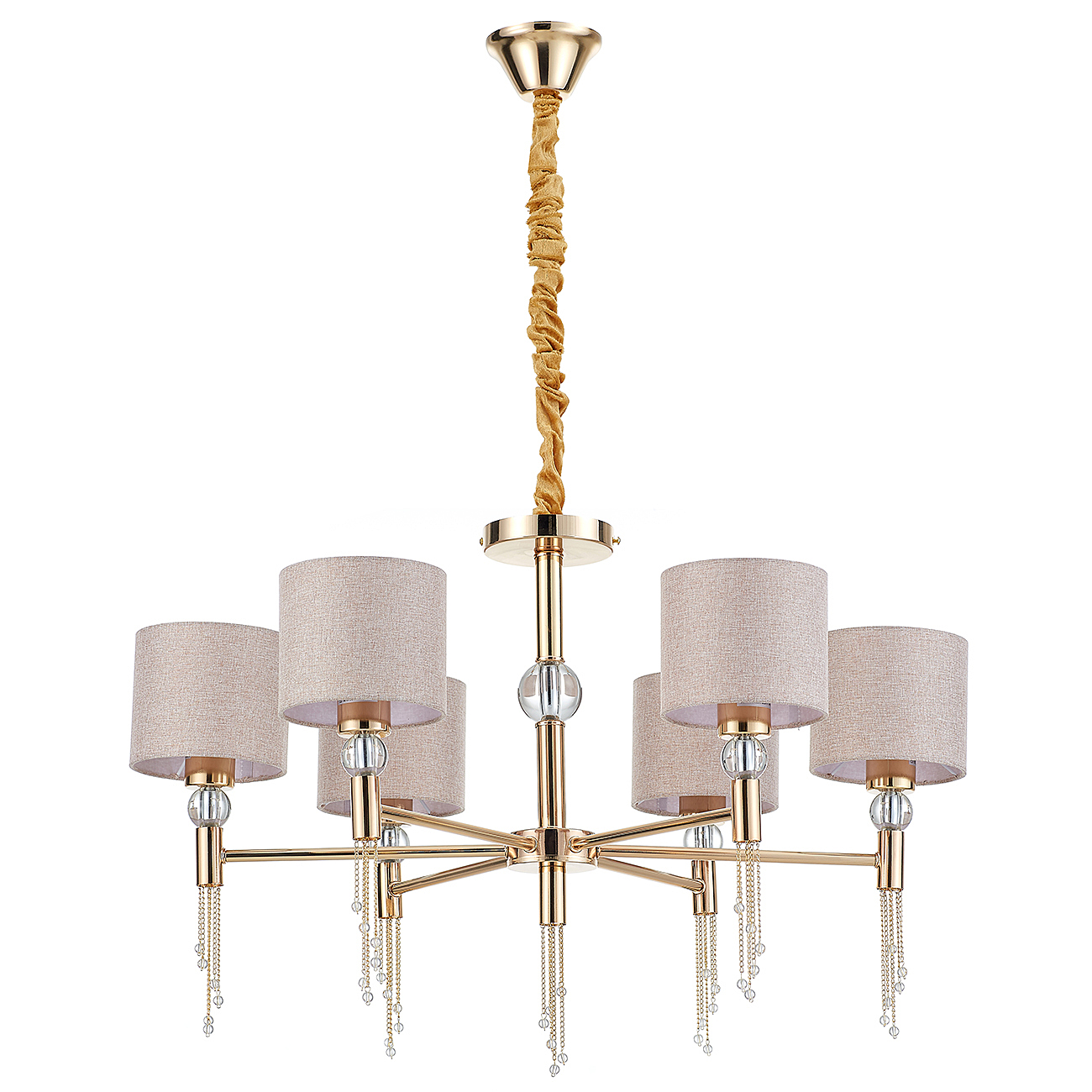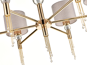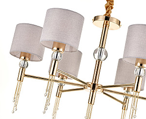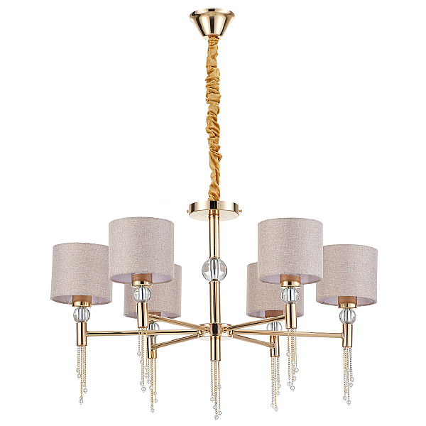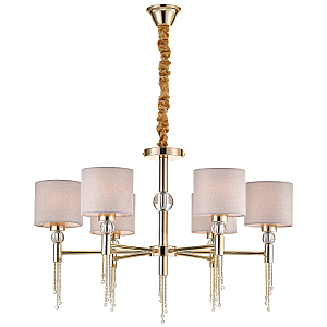 Допускается отличие страны-изготовителя, указанной в характеристиках. Линии производства могут находиться в нескольких государствах. Это не влияет на качество изготовления товара: все заводы данного бренда работают по общим стандартам, а готовые изделия проходят соответствующий контроль.Великобритания Коллекция Arioso ЦветЦвет арматуры французское золото Цвет Золото Материал арматуры Металл Материал декора Кристаллы Материал плафона Ткань РазмерыВысота (мм) 980 Длина (мм) 790 Высота минимальная (мм) 500 Ширина (мм) 790 Диаметр абажура-плафона 140 Высота абажура-плафона 120 ЭлектрикаКоличество ламп (шт) 6 Цоколь E27 Мощность лампы (Вт) 60 Напряжение (В) 220 Площадь освещения 22 Дополнительная информацияСпособ крепления Планка, Крюк Степень защиты (IP) IP20 Вес (Кг) 3 Тип подвеса На цепи -
