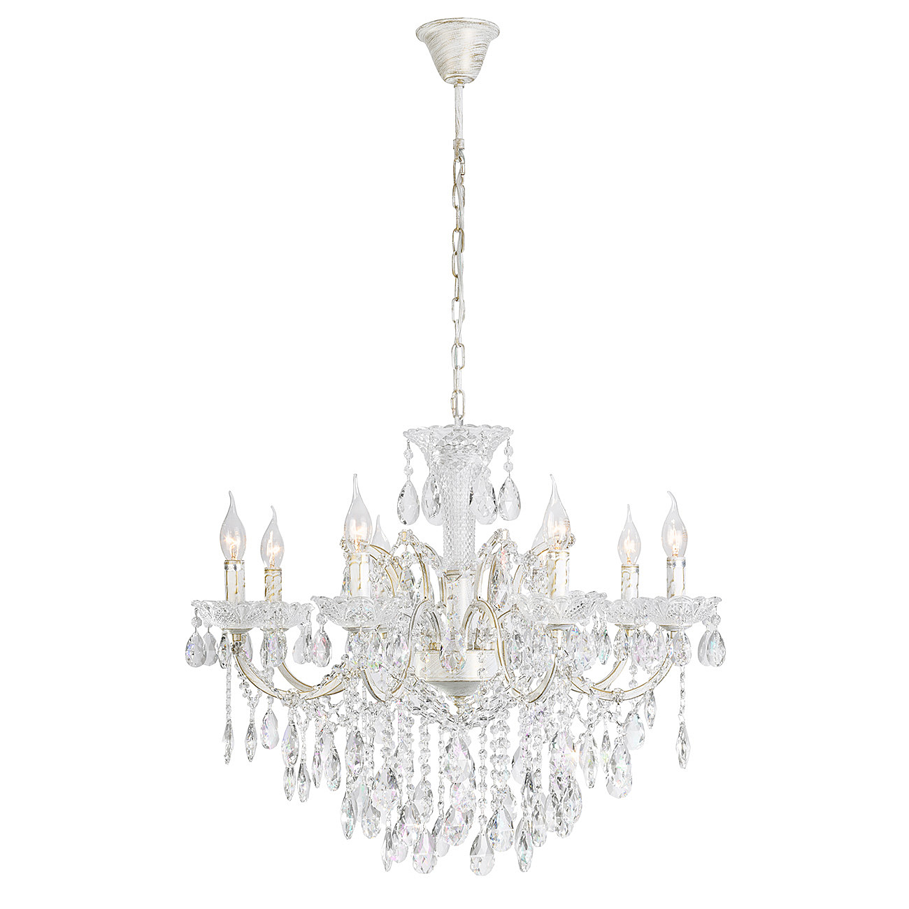 Допускается отличие страны-изготовителя, указанной в характеристиках. Линии производства могут находиться в нескольких государствах. Это не влияет на качество изготовления товара: все заводы данного бренда работают по общим стандартам, а готовые изделия проходят соответствующий контроль.Великобритания Коллекция Belief ЦветЦвет арматуры Прозрачный, белый с золотой патиной Цвет Белый Материал арматуры Металл, Стекло Материал декора Кристаллы РазмерыВысота (мм) 1360 Длина (мм) 760 Высота минимальная (мм) 620 Ширина (мм) 760 Диаметр абажура-плафона 115 Высота абажура-плафона 40 ЭлектрикаКоличество ламп (шт) 8 Цоколь E14 Мощность лампы (Вт) 60 Напряжение (В) 220 Площадь освещения 30 Дополнительная информацияСпособ крепления Крюк Степень защиты (IP) IP20 Вес (Кг) 9 Тип подвеса На цепи -