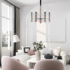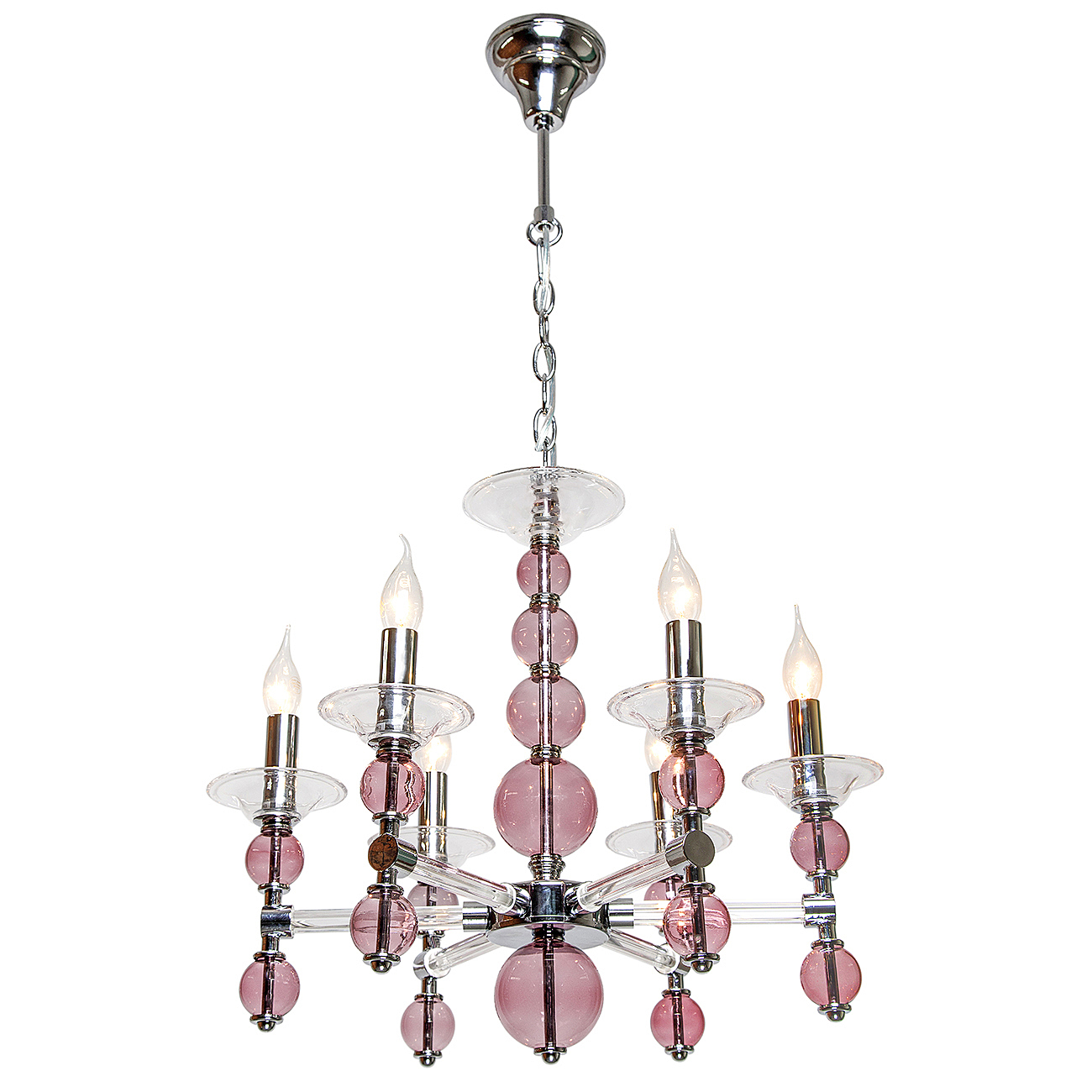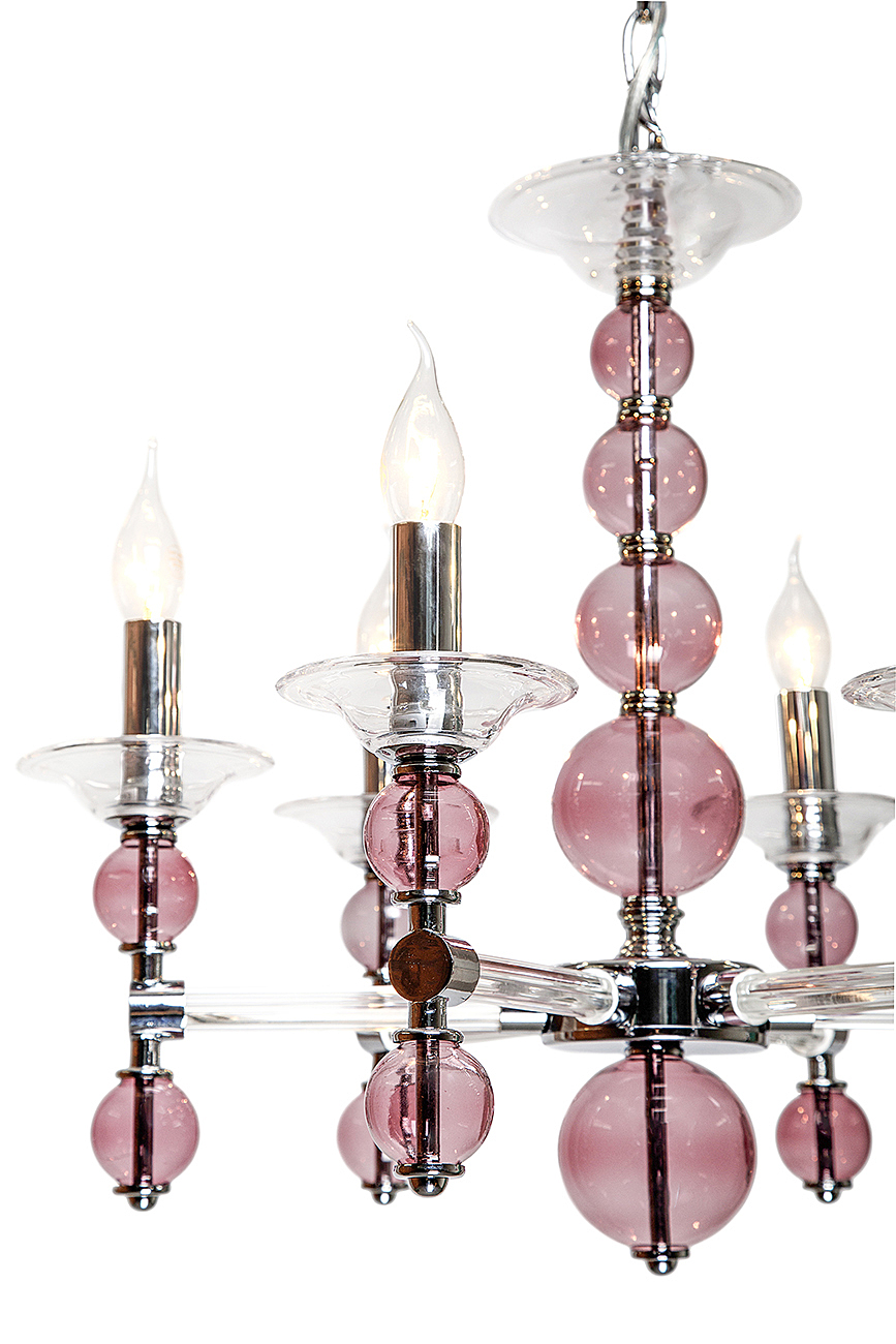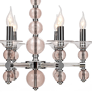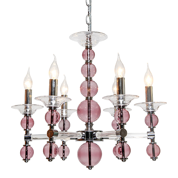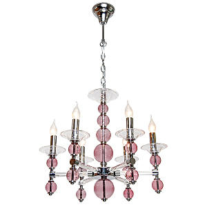Подвесной Светильник 6Х60Вт Е14, Металл/Стекло, Цвет Хром/Прозрачное Стекло/Розовое Стекло