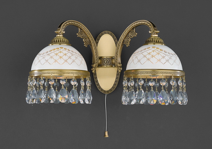 Допускается отличие страны-изготовителя, указанной в характеристиках. Линии производства могут находиться в нескольких государствах. Это не влияет на качество изготовления товара: все заводы данного бренда работают по общим стандартам, а готовые изделия проходят соответствующий контроль.Италия Коллекция 7000 ЦветЦвет арматуры Бронза, состаренная бронза Цвет Бронза Материал арматуры Латунь Цвет декора прозрачный Цвет плафона Белый Материал декора Хрусталь Материал плафона VETRO BIANCO IMPERO РазмерыВысота (мм) 210 Ширина (мм) 380 ЭлектрикаКоличество ламп (шт) 2 Цоколь E27 Тип лампы Накаливания, Энергосберегающая (КЛЛ) Лампочки в комплекте Нет в комплекте Возможность подключение диммера Есть Мощность лампы (Вт) 60 Общая мощность (Вт) 120 Напряжение (В) 220 Площадь освещения 6 Дополнительная информацияСтепень защиты (IP) IP20 Тип выключателя Сонетка (шнурок) Техническая оссобеность С выключателем -