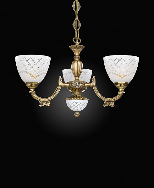 Корпус люстры изготовлен из высококачественной латуни и имеет покрытие BRONZO ARTE.
