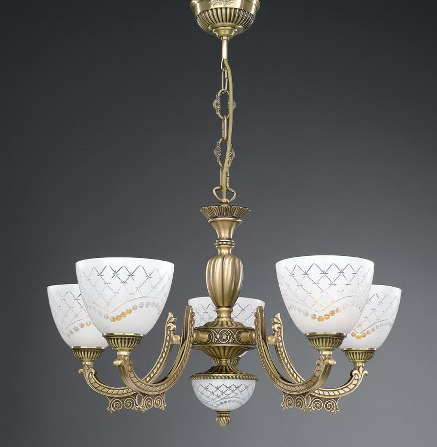 Корпус люстры изготовлен из высококачественной латуни и имеет покрытие BRONZO ARTE.