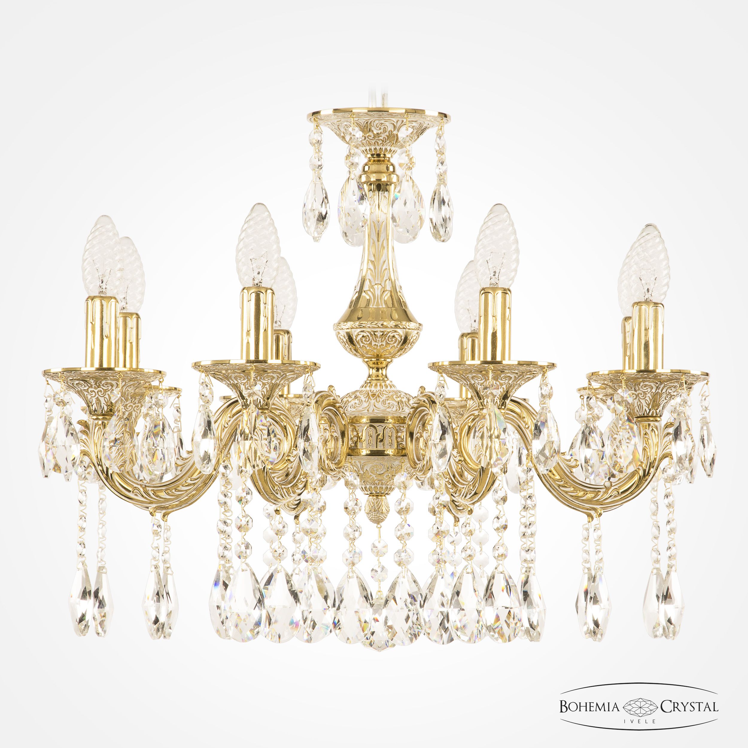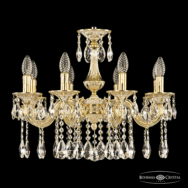 Допускается отличие страны-изготовителя, указанной в характеристиках. Линии производства могут находиться в нескольких государствах. Это не влияет на качество изготовления товара: все заводы данного бренда работают по общим стандартам, а готовые изделия проходят соответствующий контроль.Чехия Коллекция 7101 ЦветЦвет арматуры золото белёное Цвет Золото Материал арматуры Латунь Цвет декора бесцветный РазмерыВысота (мм) 450 Диаметр (мм) 560 Ширина (мм) 560 ЭлектрикаКоличество ламп (шт) 8 Цоколь E14 Мощность лампы (Вт) 40 Дополнительная информацияВес (Кг) 9 Тип подвеса На цепи -
