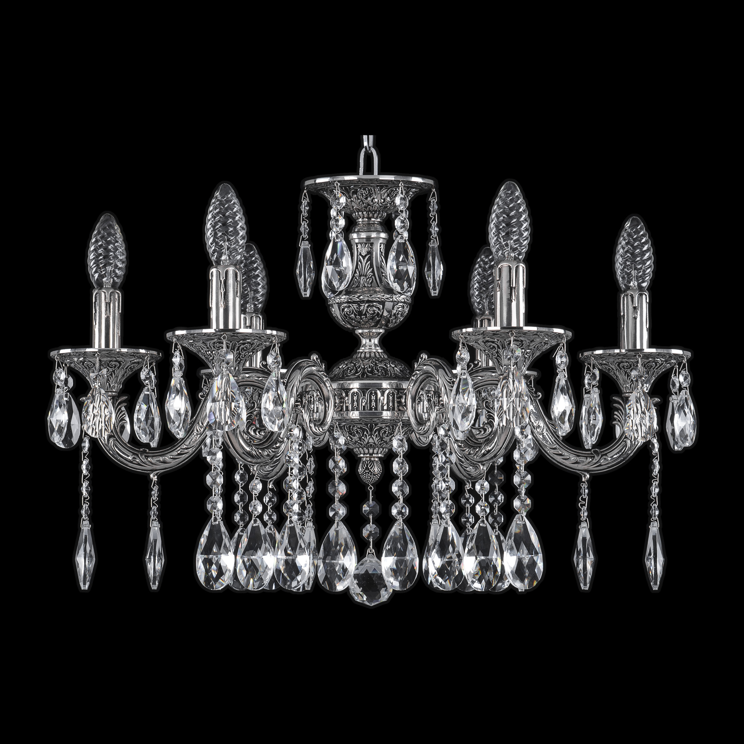 Допускается отличие страны-изготовителя, указанной в характеристиках. Линии производства могут находиться в нескольких государствах. Это не влияет на качество изготовления товара: все заводы данного бренда работают по общим стандартам, а готовые изделия проходят соответствующий контроль.Чехия Коллекция 7101 ЦветЦвет арматуры никель черненый Цвет Никель Материал арматуры Латунь Цвет декора бесцветный РазмерыВысота (мм) 380 Диаметр (мм) 580 Ширина (мм) 580 ЭлектрикаКоличество ламп (шт) 6 Цоколь E14 Мощность лампы (Вт) 40 Дополнительная информацияВес (Кг) 6 Тип подвеса На цепи -