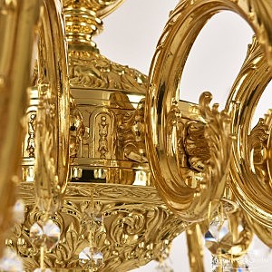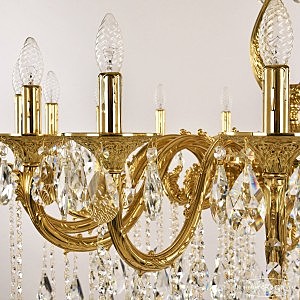 Допускается отличие страны-изготовителя, указанной в характеристиках. Линии производства могут находиться в нескольких государствах. Это не влияет на качество изготовления товара: все заводы данного бренда работают по общим стандартам, а готовые изделия проходят соответствующий контроль.Чехия Коллекция 7101 ЦветЦвет арматуры Золото Цвет Золото Материал арматуры Латунь Цвет декора бесцветный РазмерыВысота (мм) 850 Диаметр (мм) 1090 Ширина (мм) 1090 ЭлектрикаКоличество ламп (шт) 16 Цоколь E14 Мощность лампы (Вт) 40 Дополнительная информацияВес (Кг) 40 Тип подвеса На цепи -